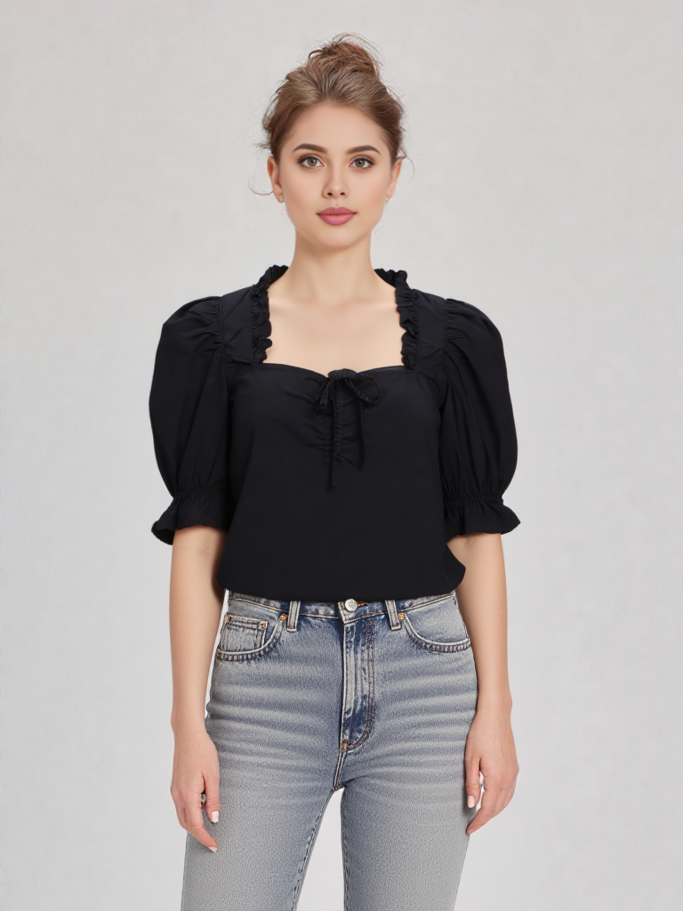 Blusa Tania Cuello Cuadrado Negro para mujer