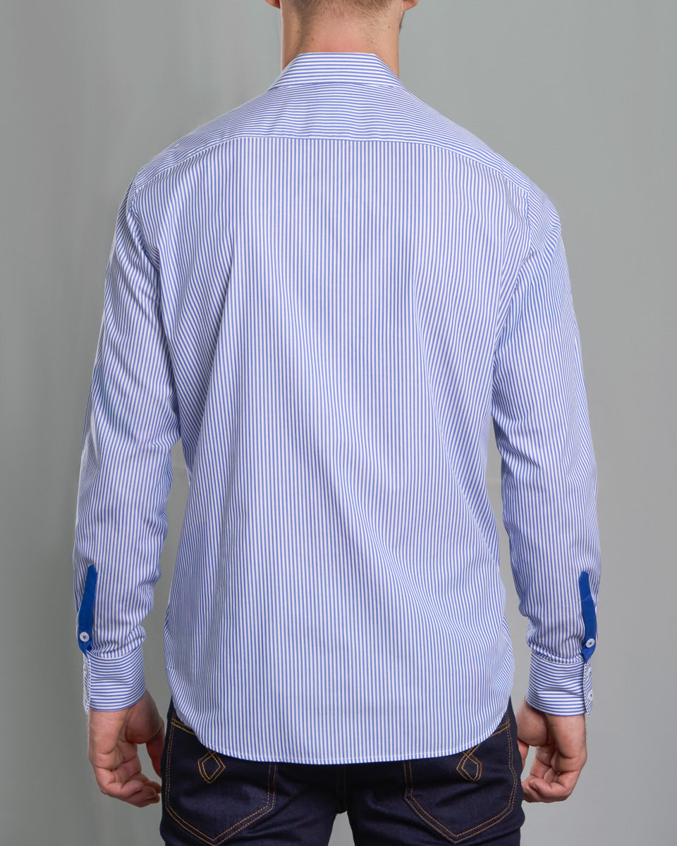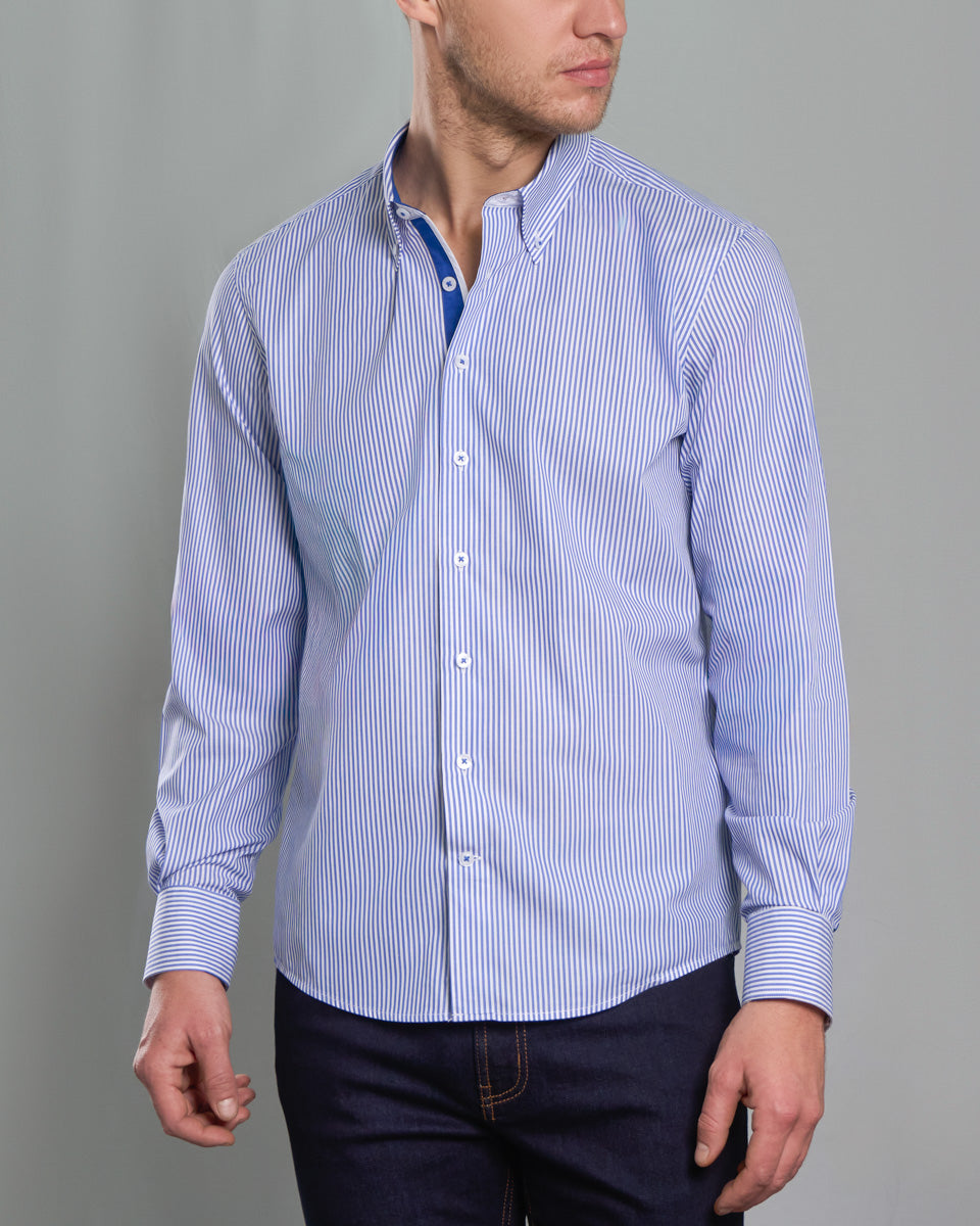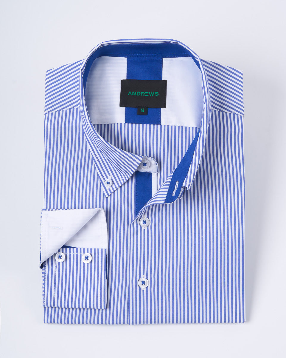 Camisa Casual A Rayas Azul con detalle Azulino