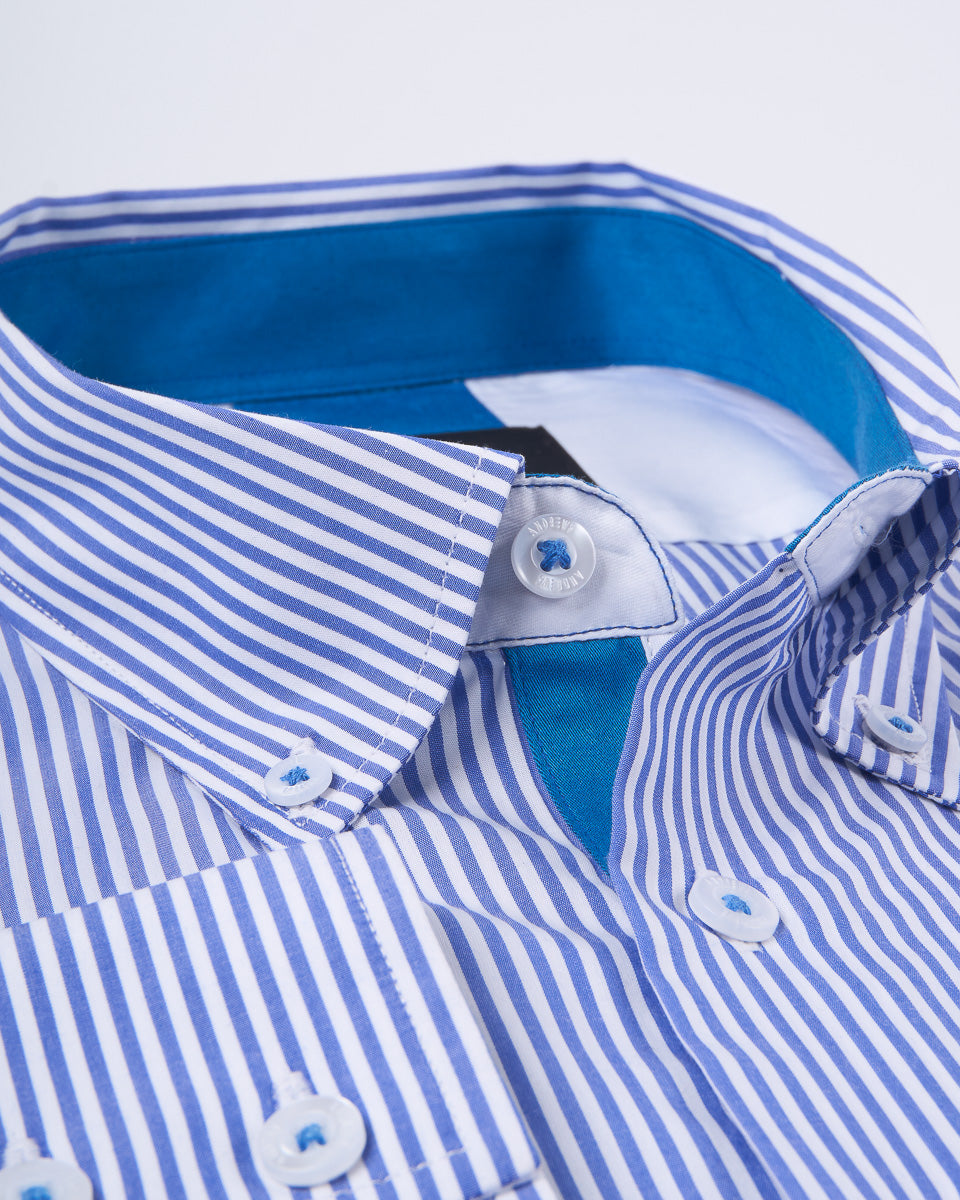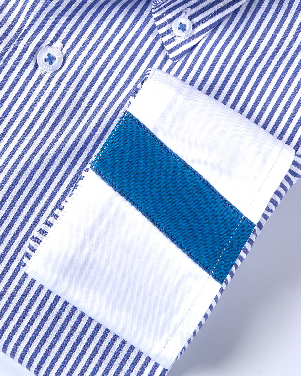 Camisa Casual A Rayas Azul con detalle Azul Acero