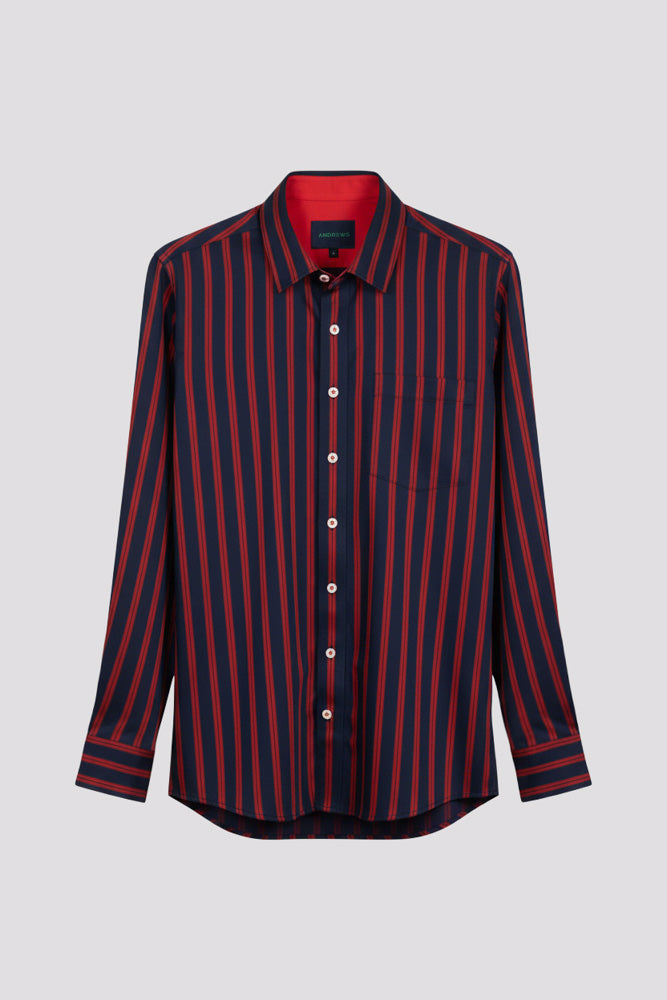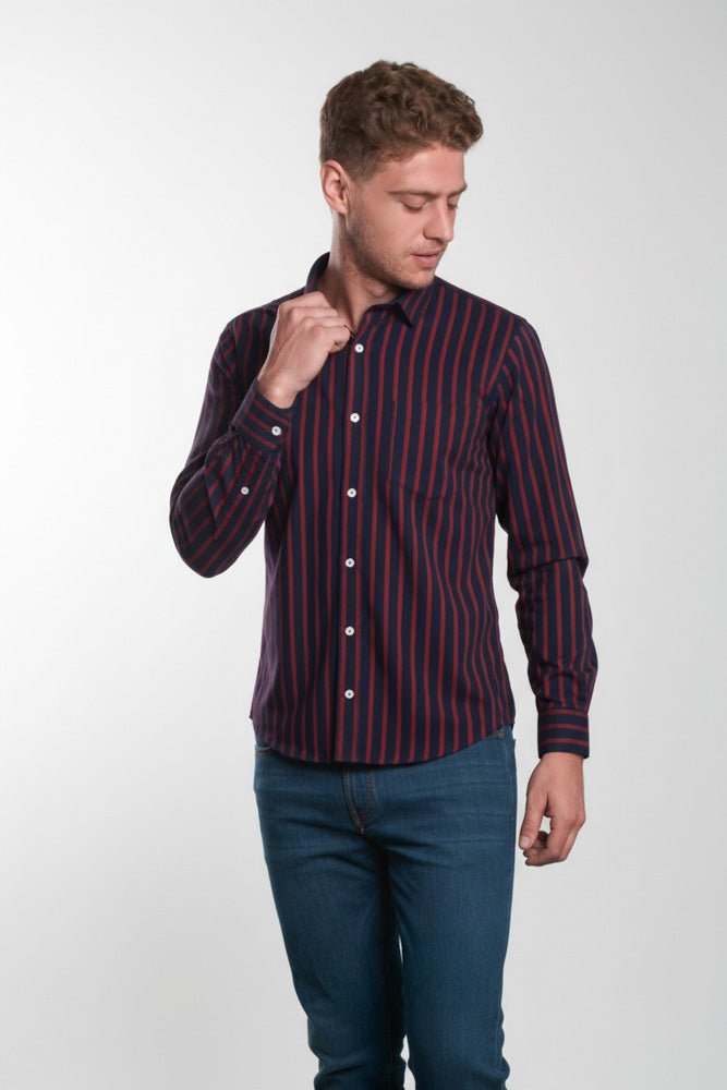 Camisa Casual A Rayas - Rojo con azul