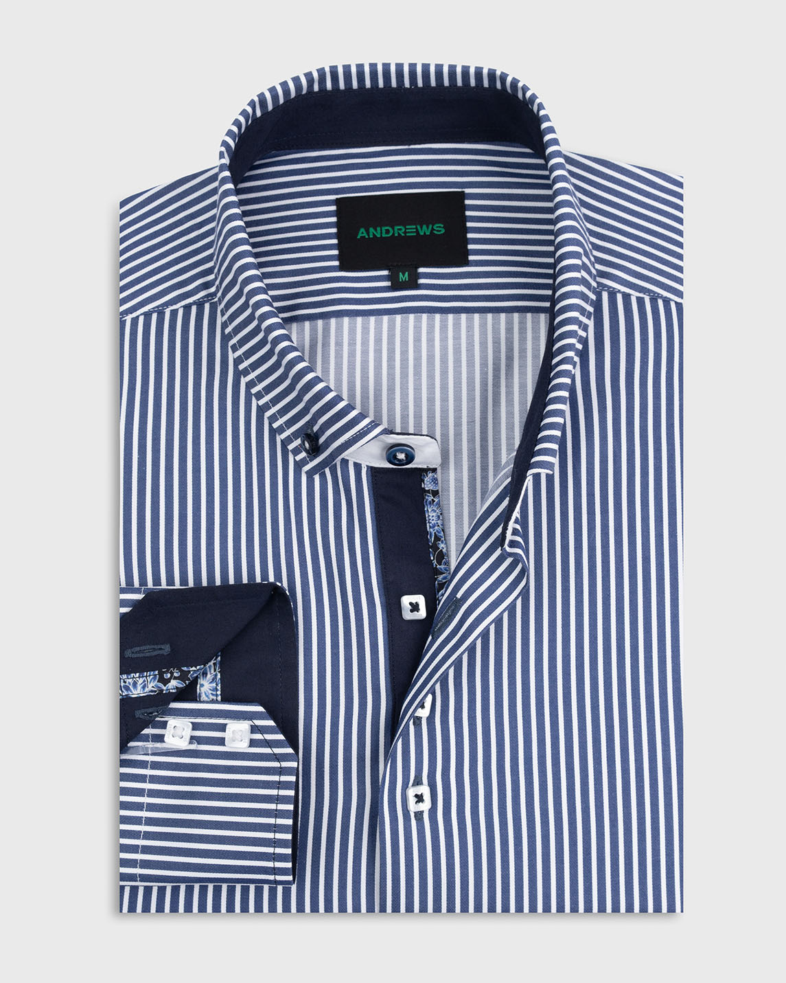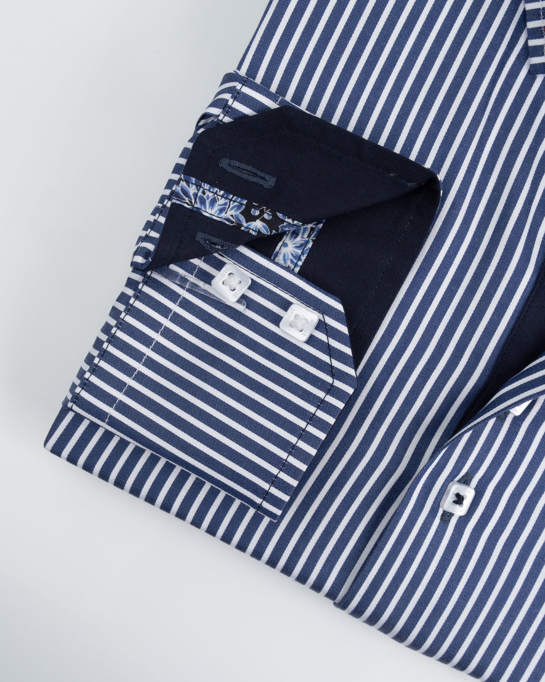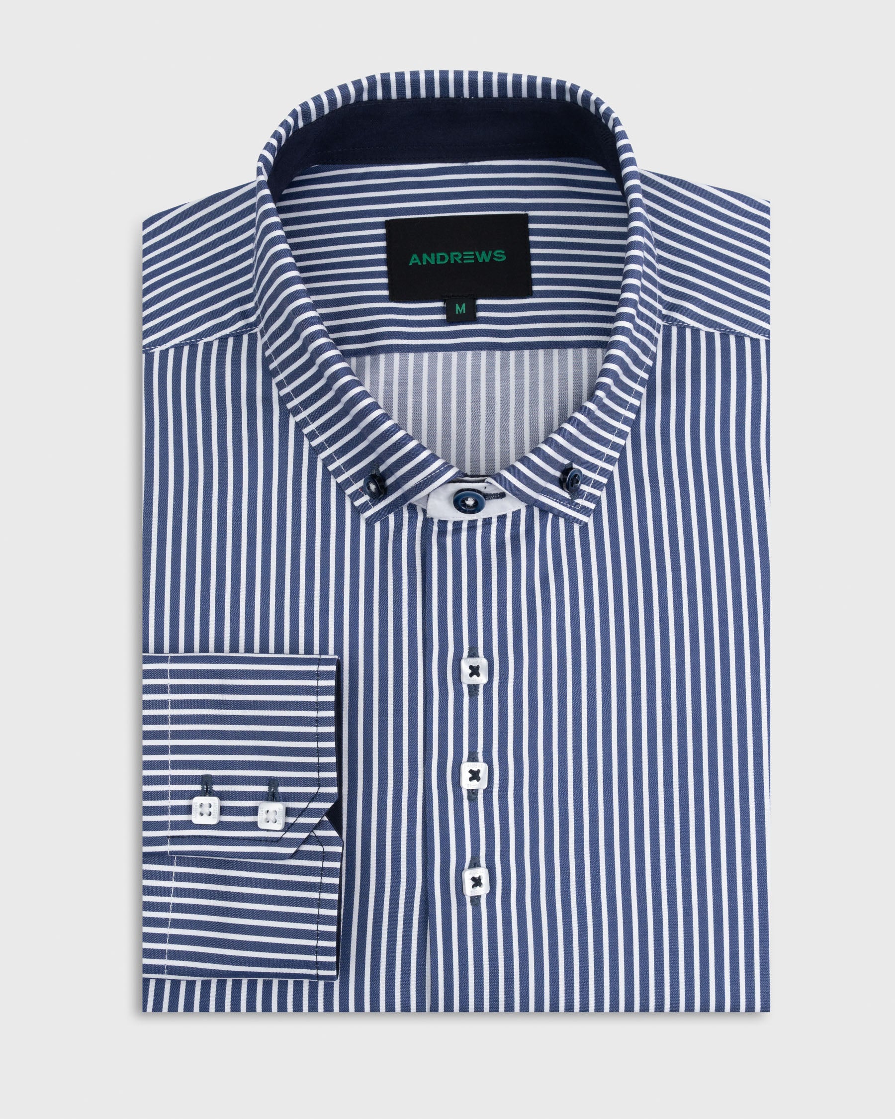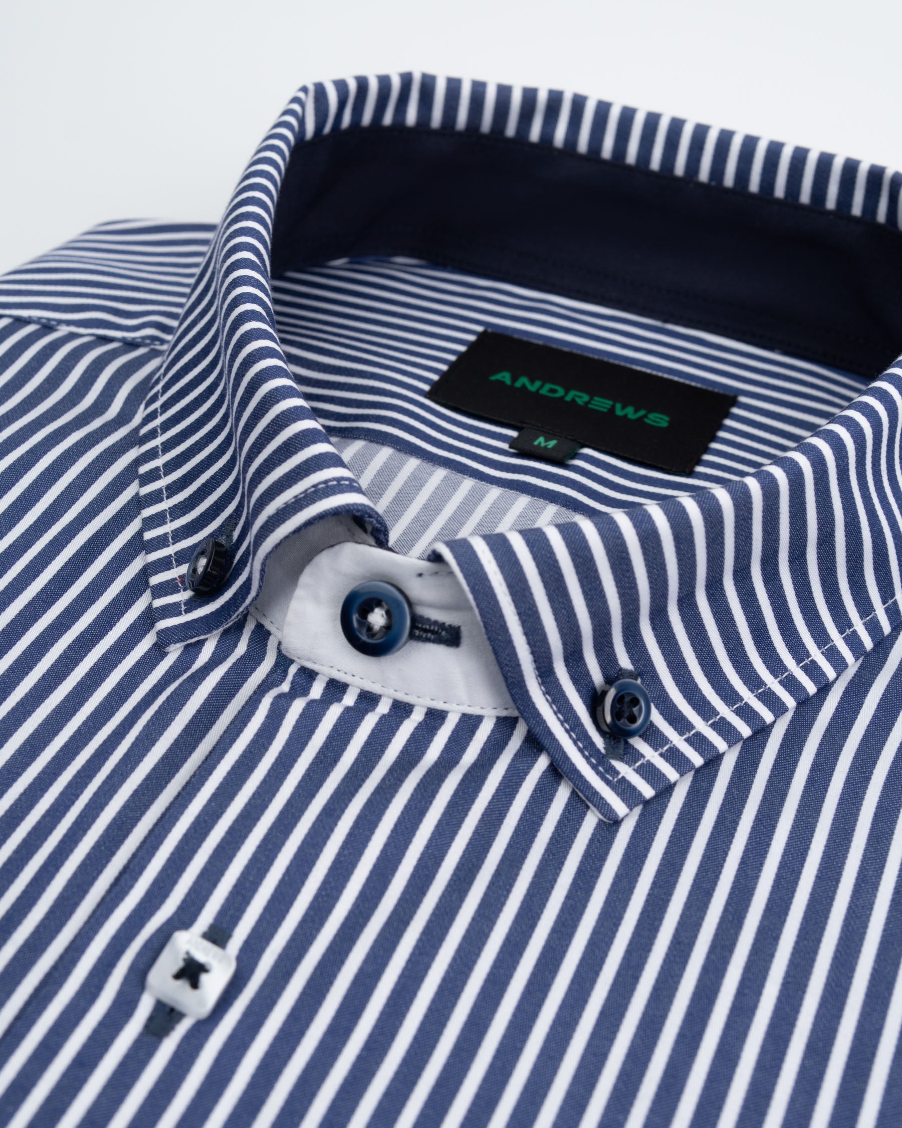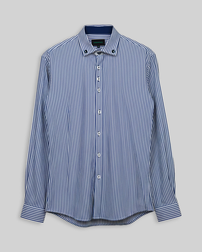 Camisa Casual - Azul con rayas Blancas con detalles en el Puño y Pechera