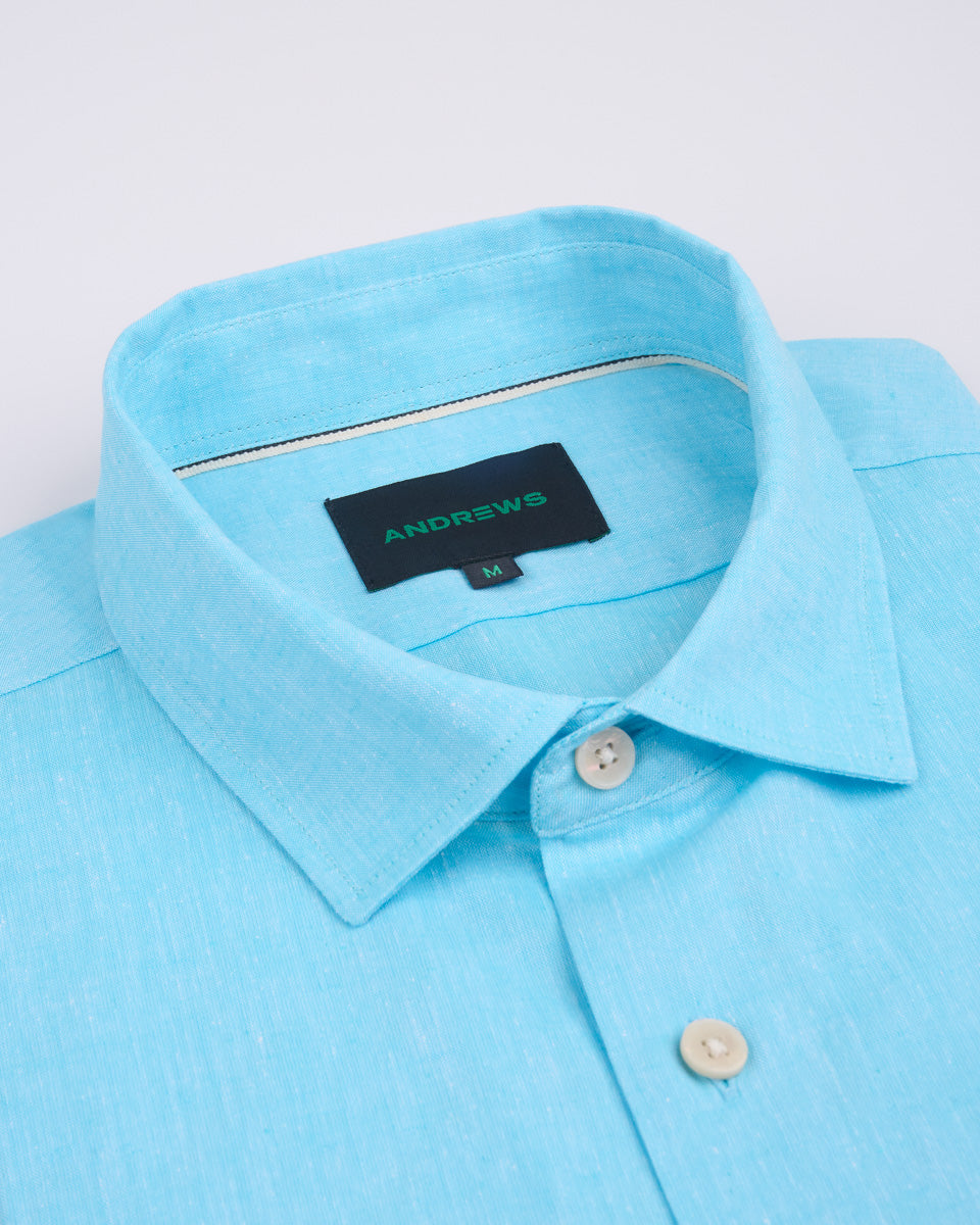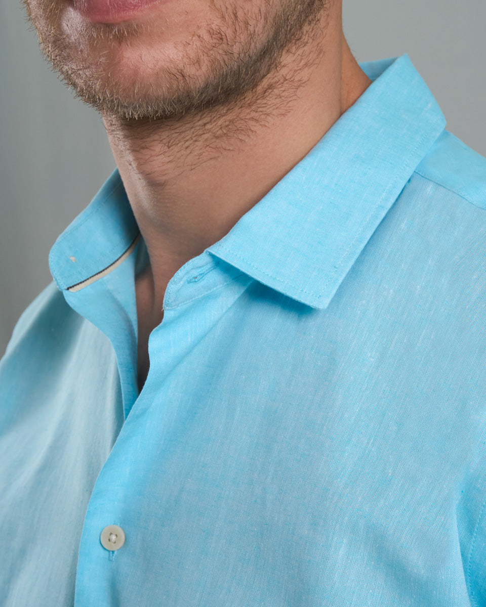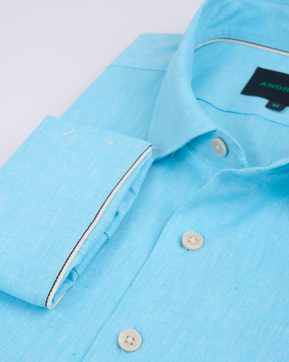 Camisa Casual de Lino - Celeste