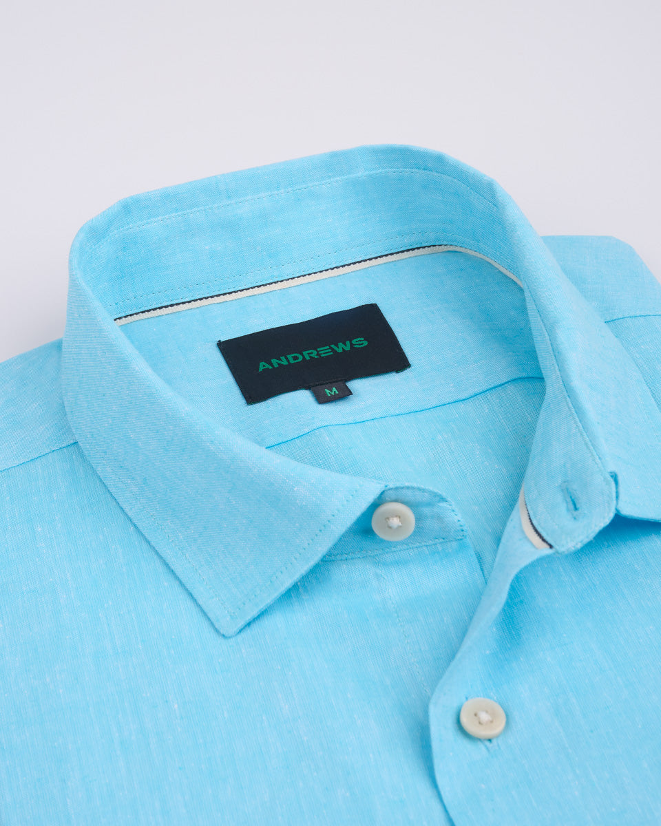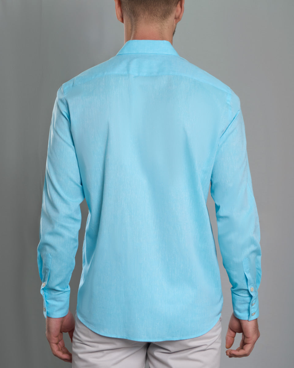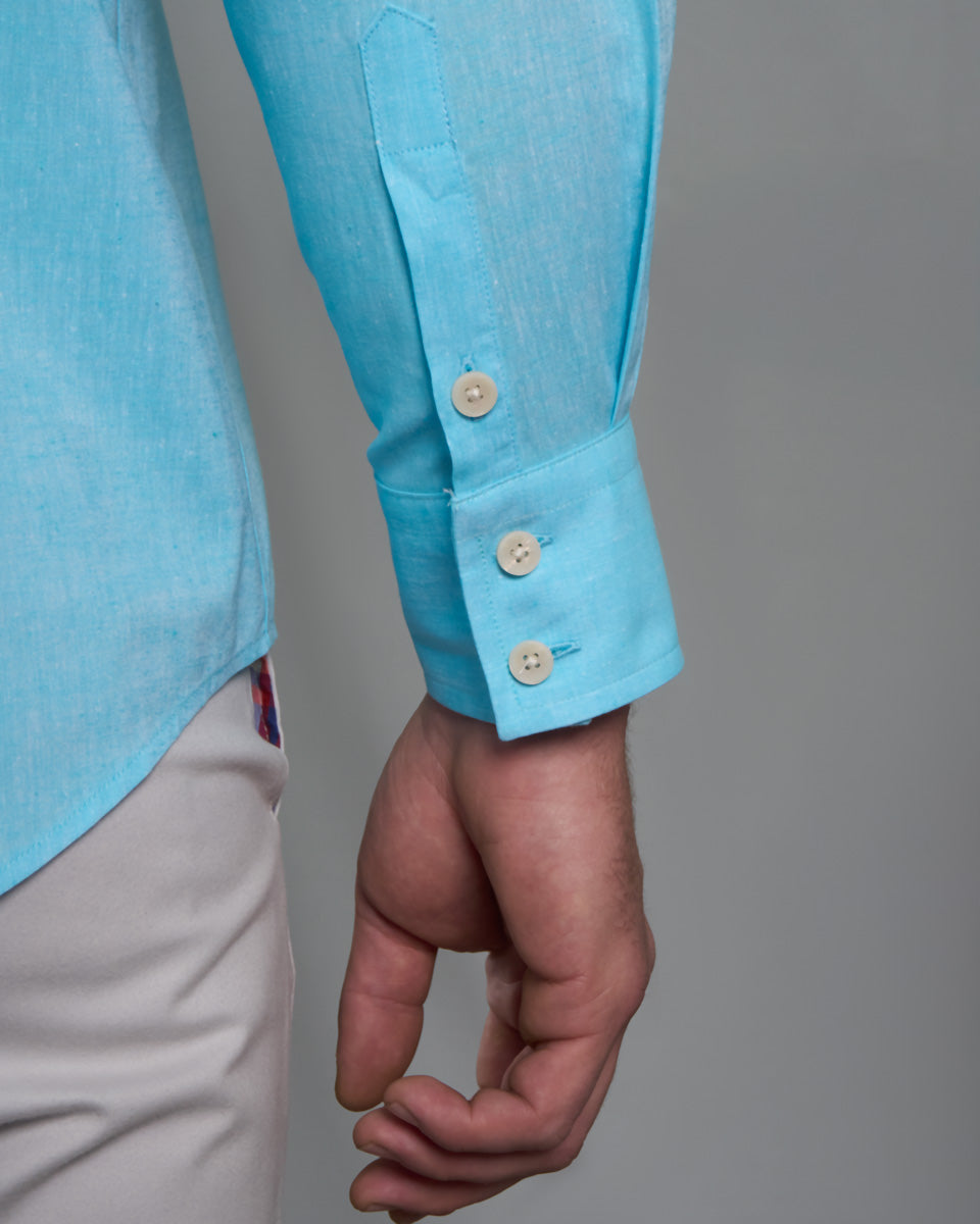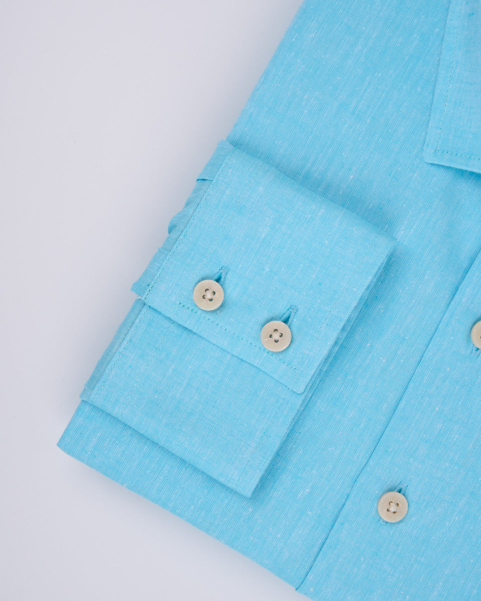Camisa Casual de Lino - Celeste