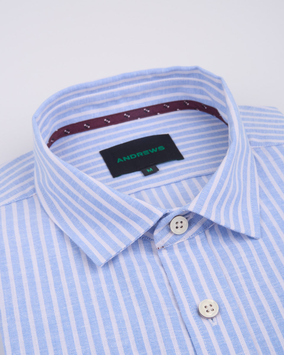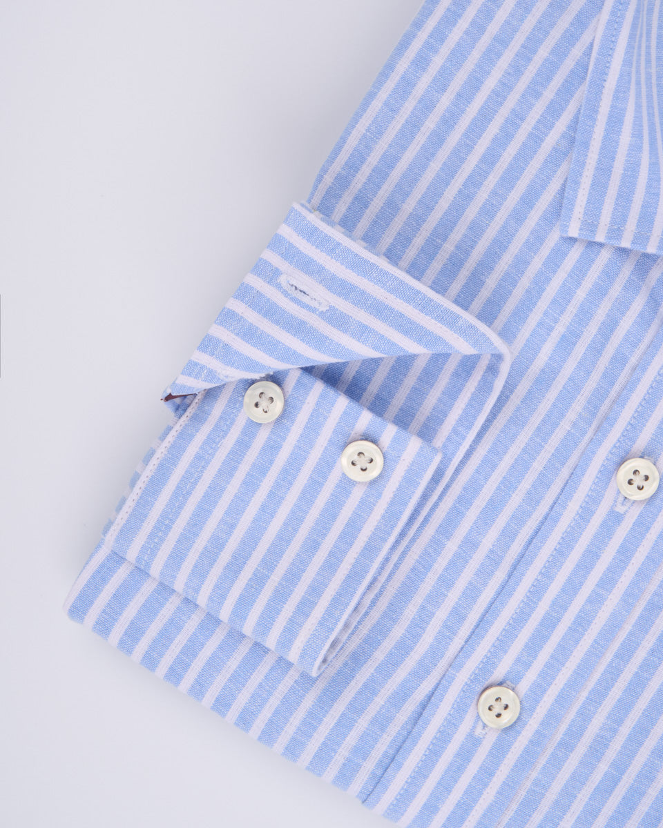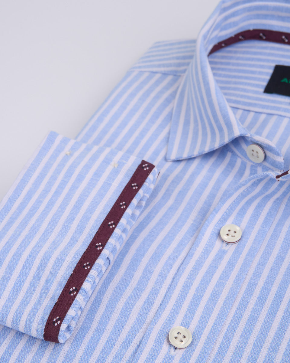 Camisa casual confeccionada en una mezcla de lino y algodón que garantiza frescura, ligereza y comodidad durante todo el día. Su diseño se realza con delicados ribetes en el cuello y los puños, aportando un detalle distintivo que combina elegancia y modernidad. Cada prenda está pensada para mantenerte fresco y cómodo, siendo la elección perfecta para un look casual con estilo y versatilidad.