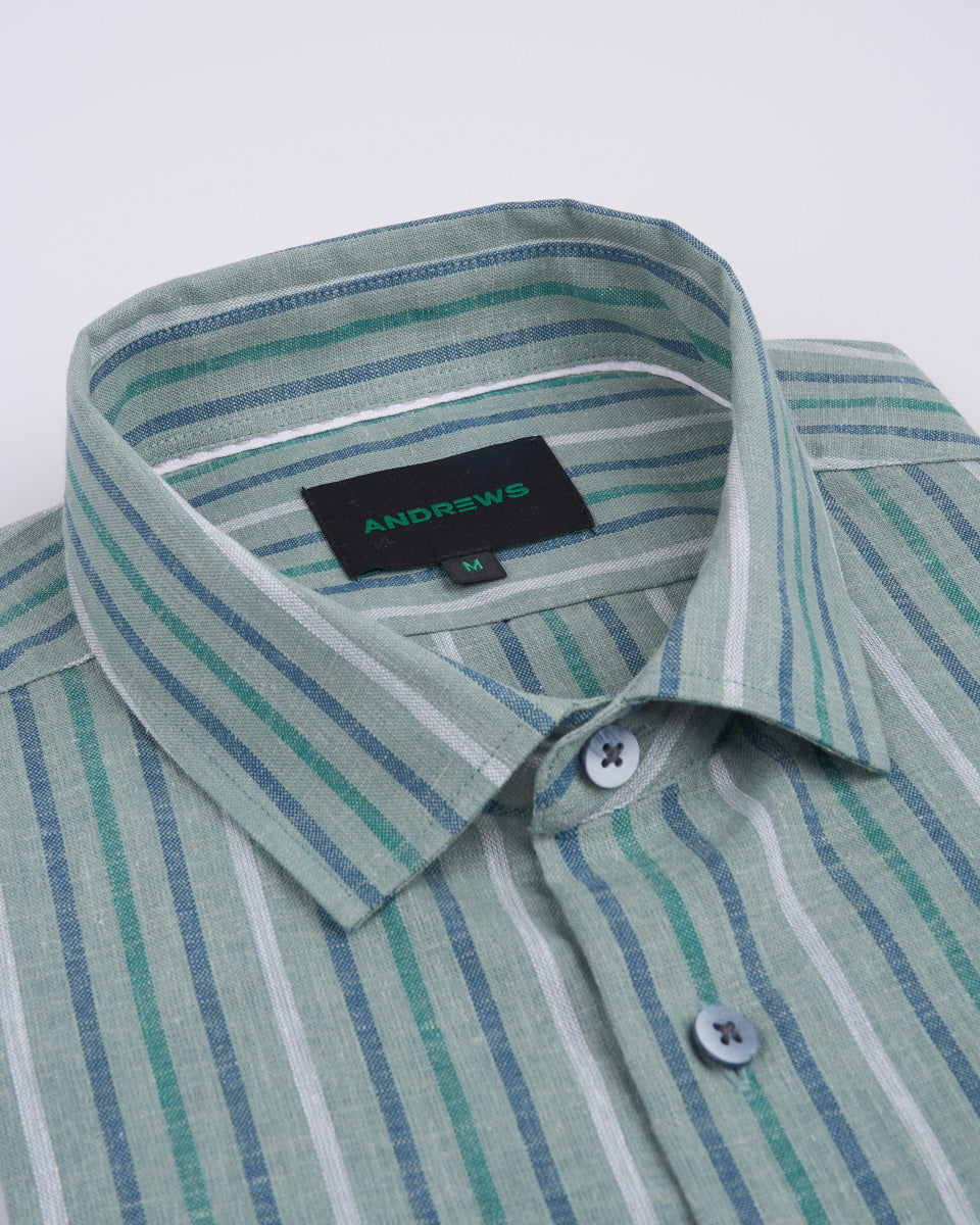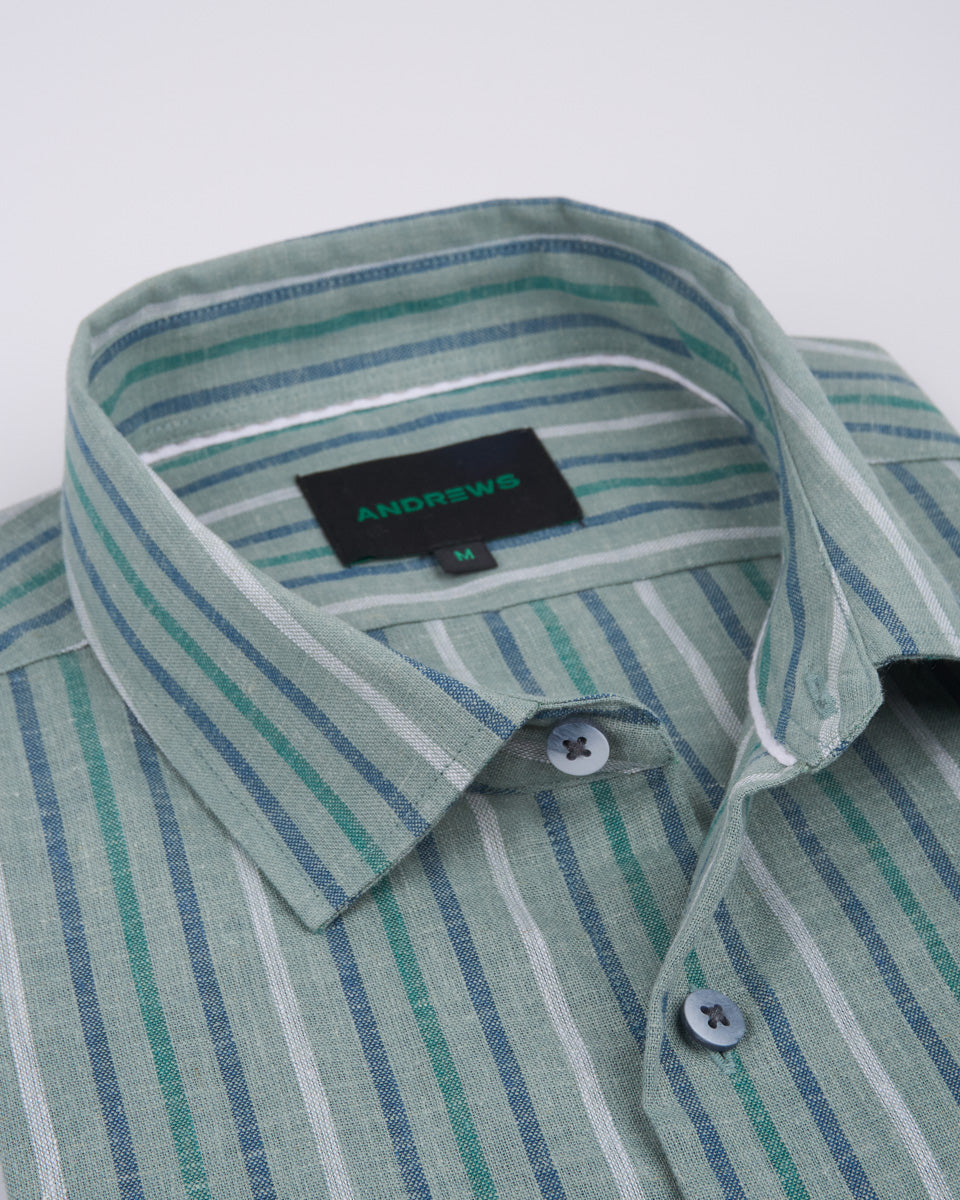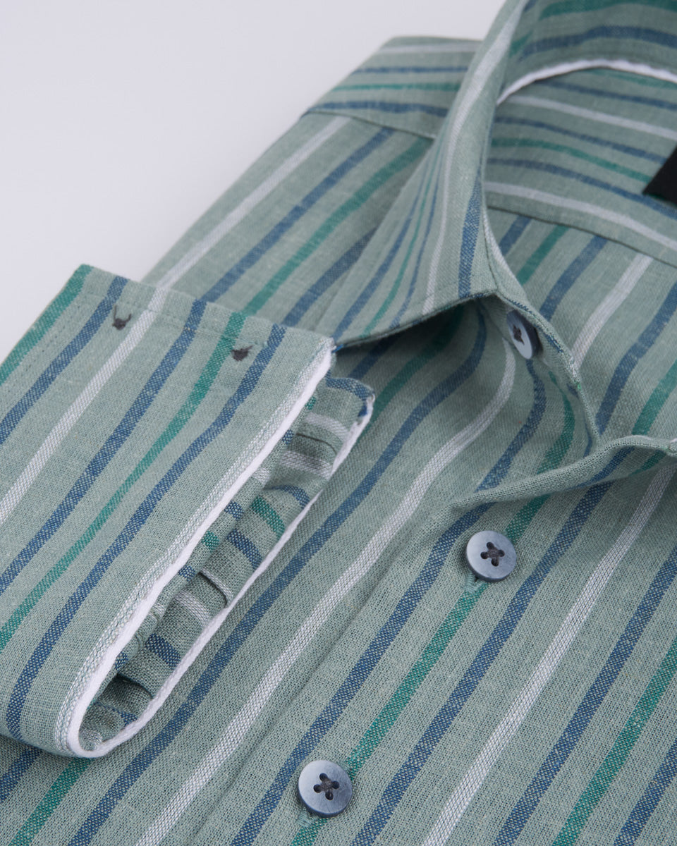 Camisa Casual de Lino - Verde con Rayas