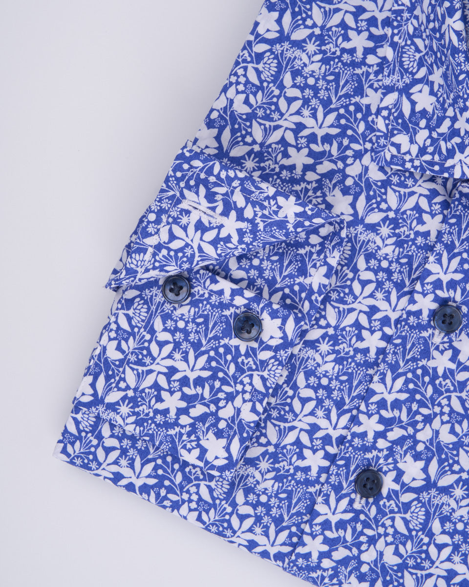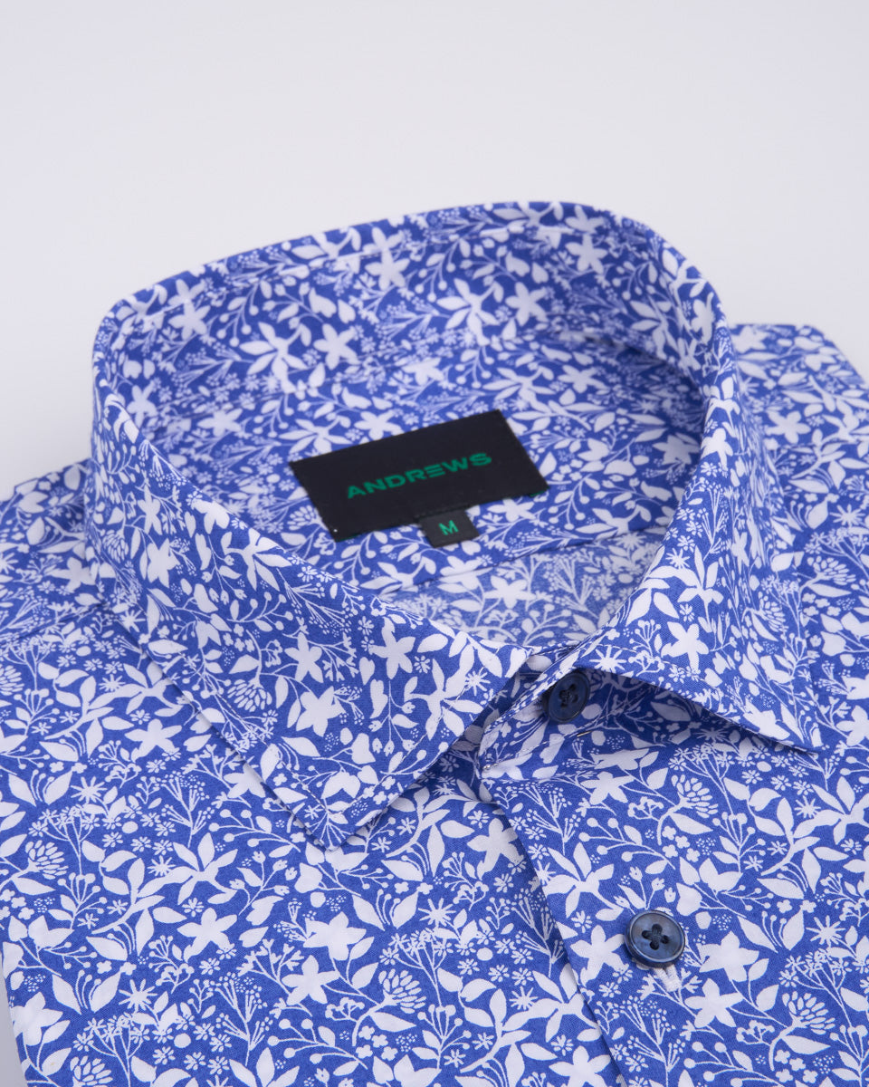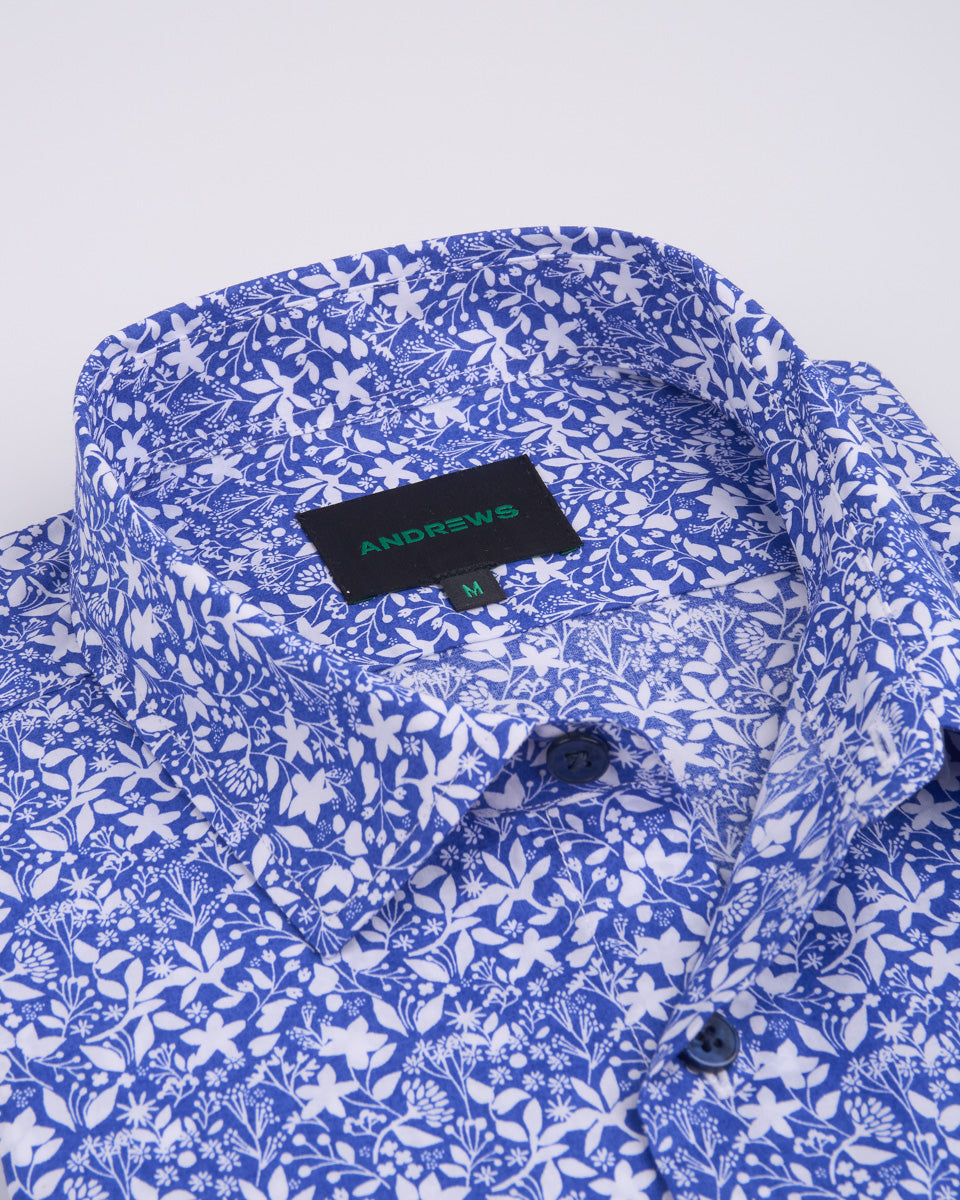 Camisa Casual Estampada - Azulino con Detalles de Flores