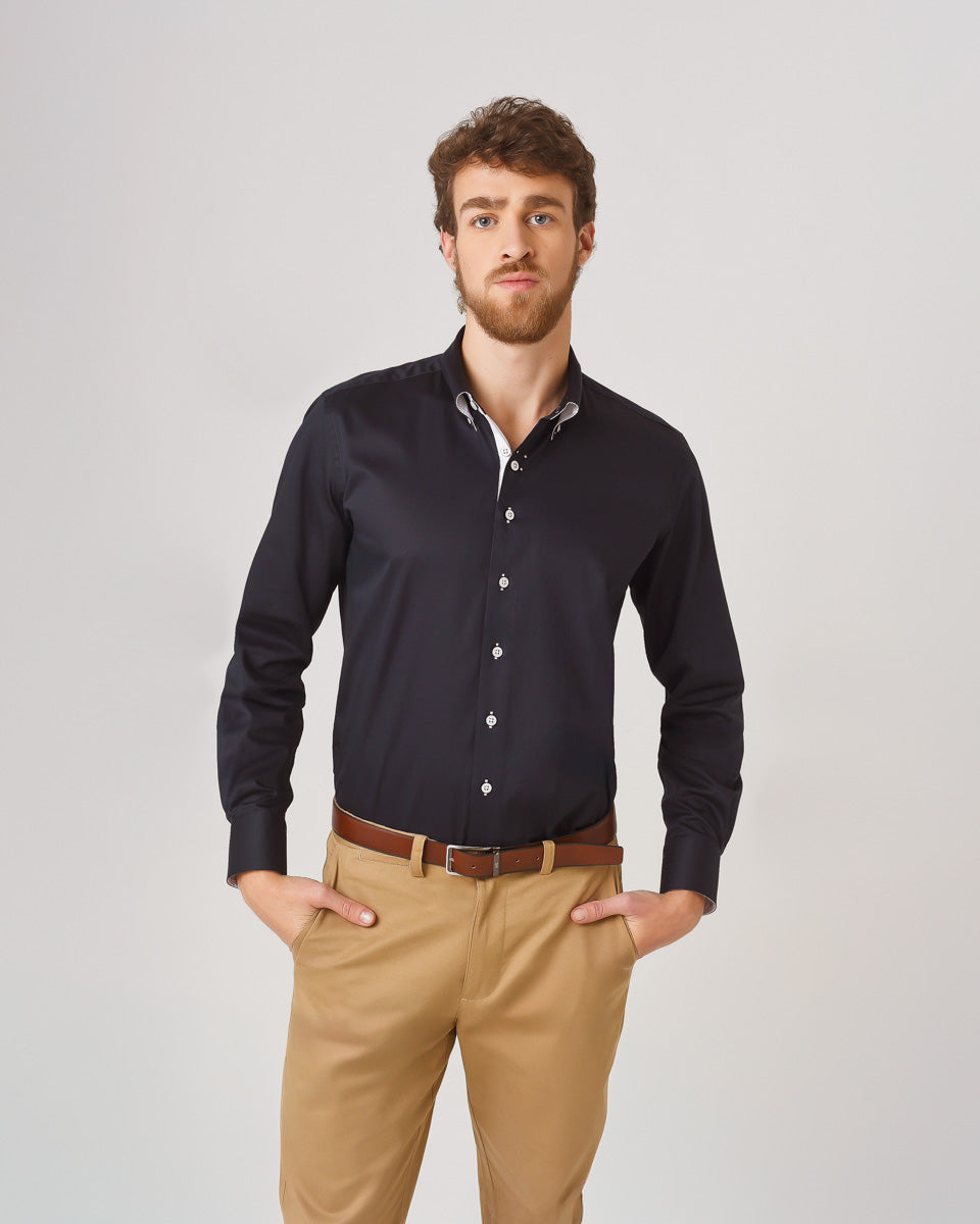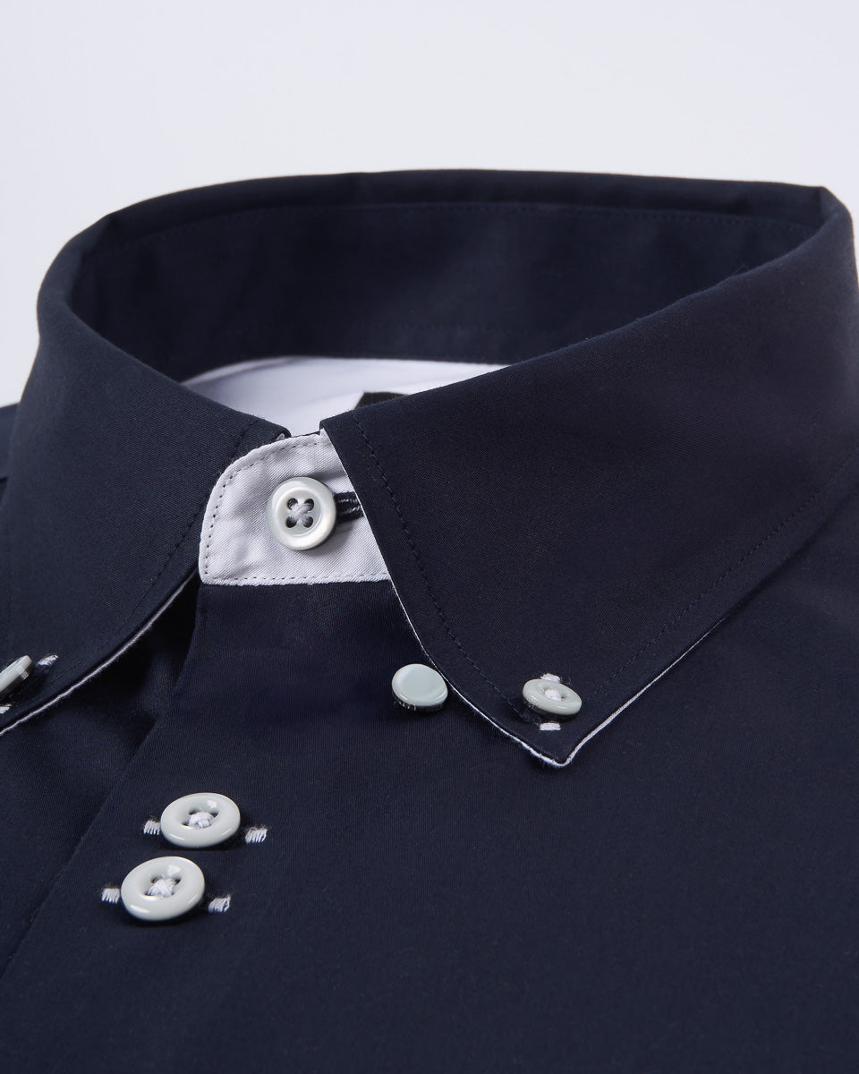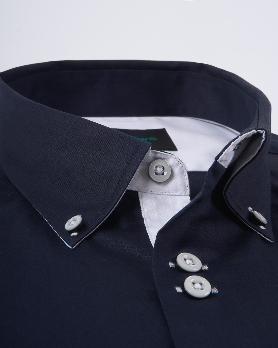 Camisa Casual Satinada - Azul con detalles Blancos