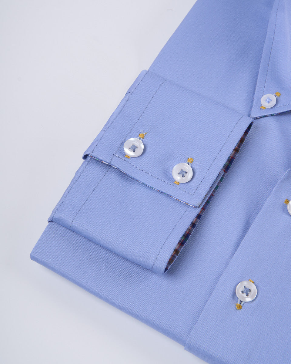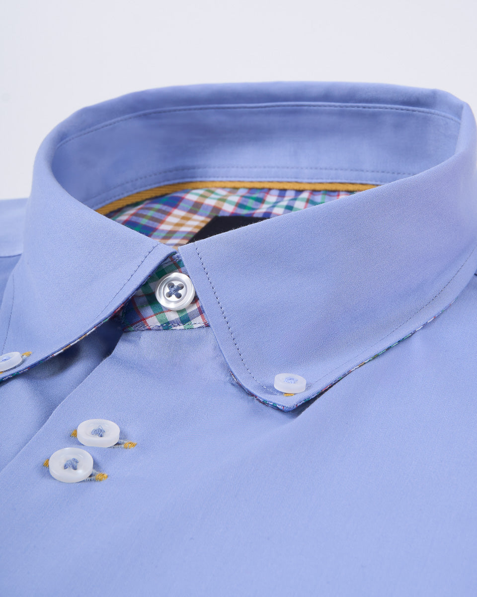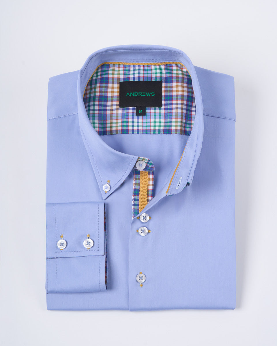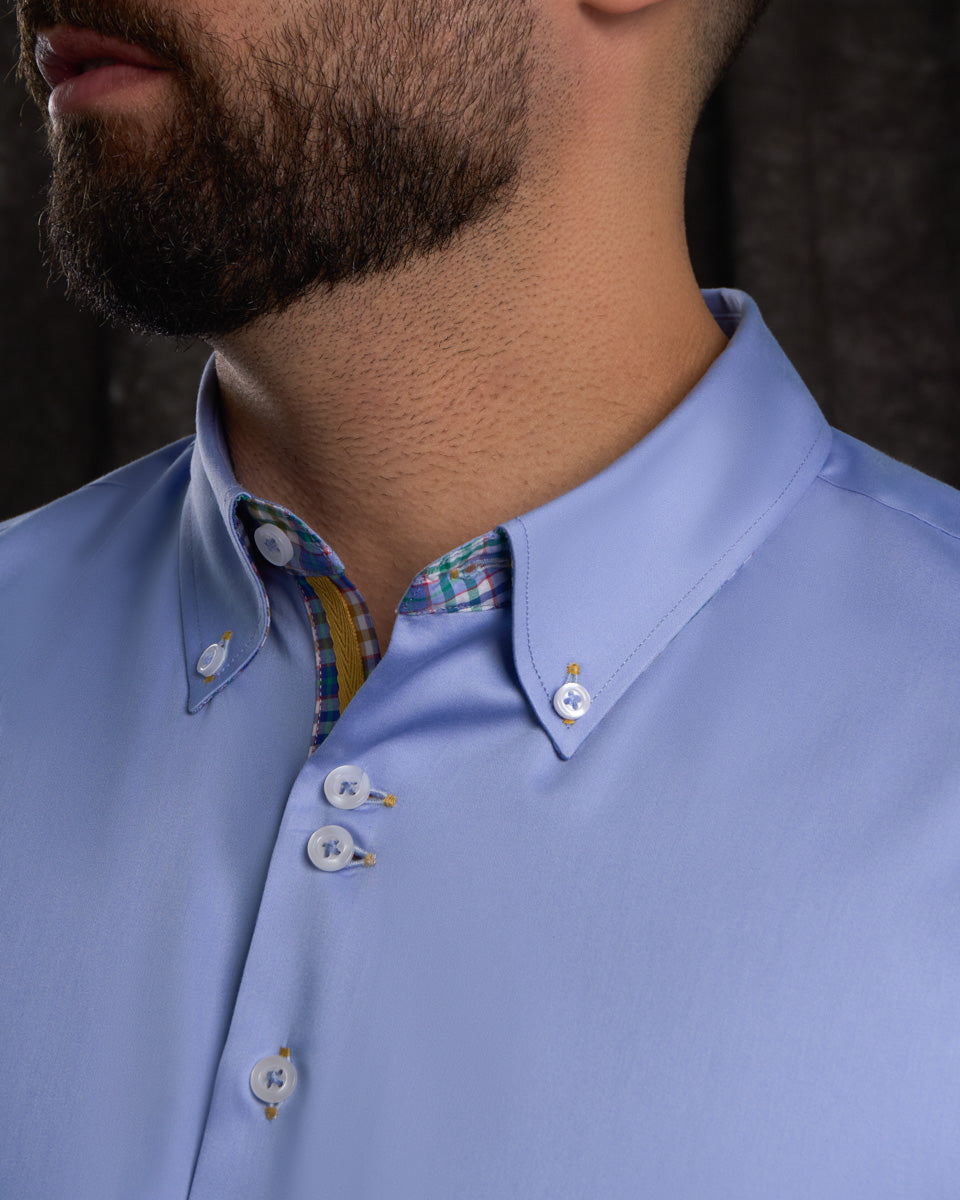 Camisa casual satinada de color entero que resalta por su estilo elegante y moderno. Confeccionada en un tejido suave y ligero con un delicado brillo, brinda comodidad y un acabado sofisticado. Los contrastes en el cuello, la pechera y los puños aportan un detalle distintivo que realza su diseño, convirtiéndola en una prenda ideal para quienes buscan destacar con un look casual refinado o semiformal. Su versatilidad la hace perfecta para combinar con jeans, pantalones de vestir o chinos.