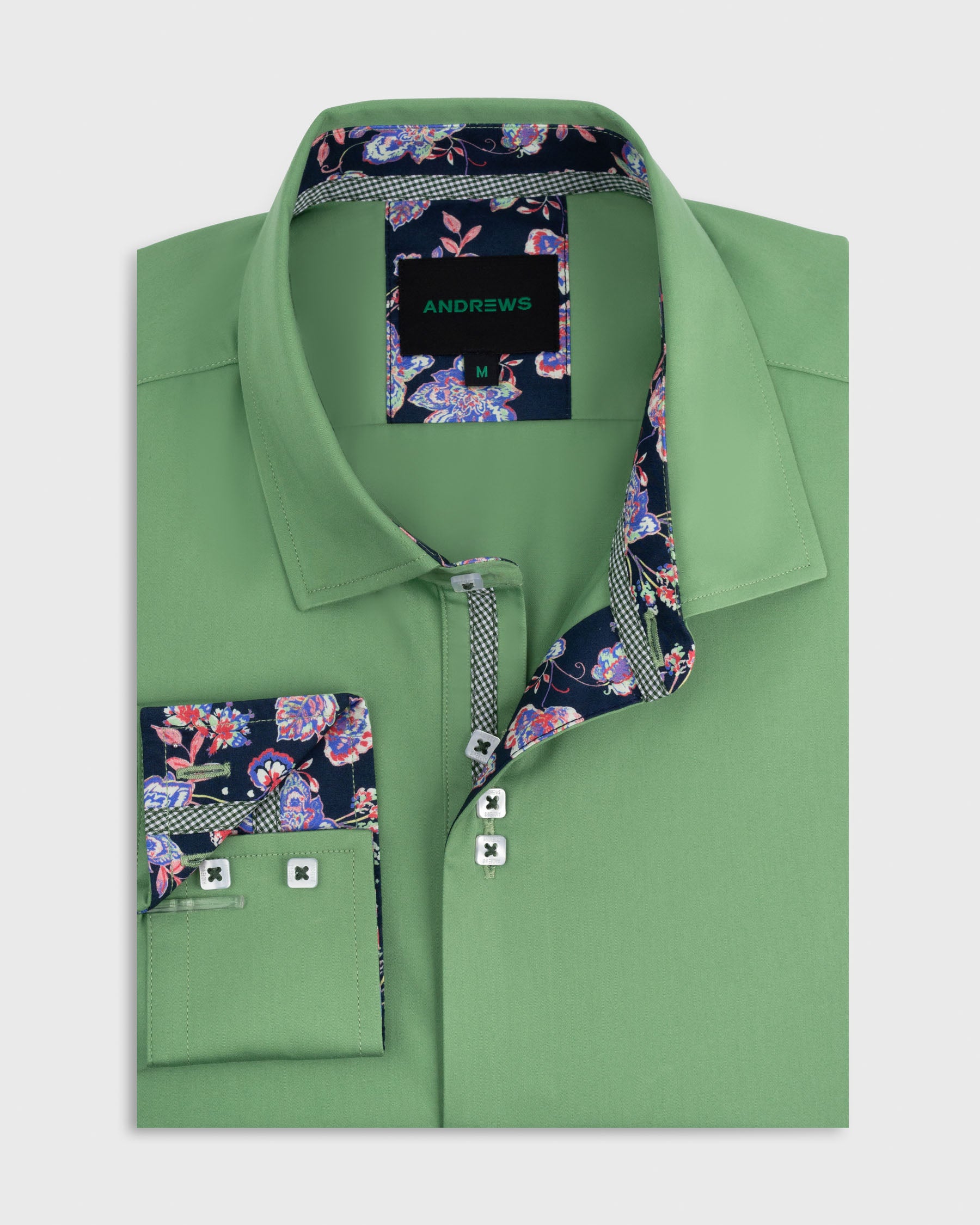 Camisa Casual - Verde con Contraste en el Puño, Cuello y Pechera