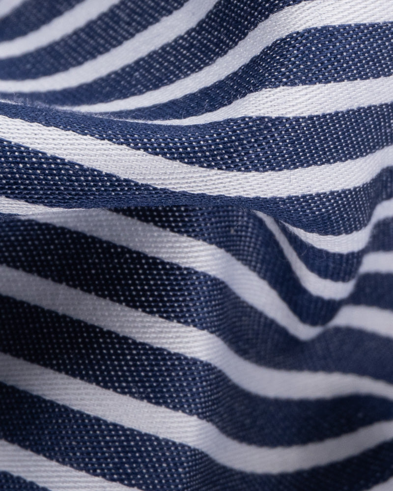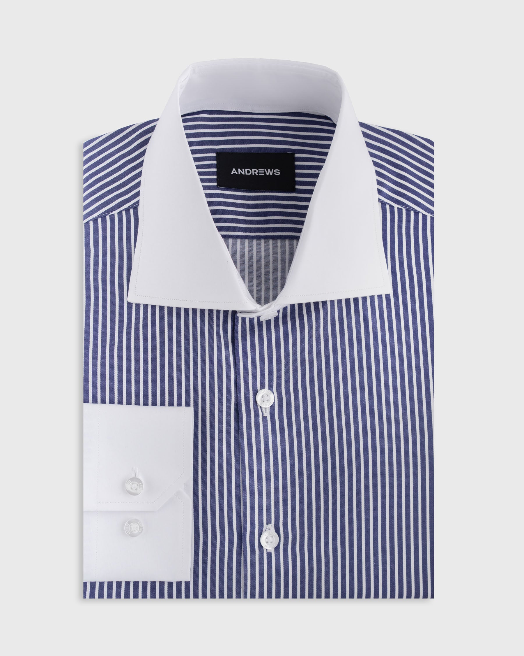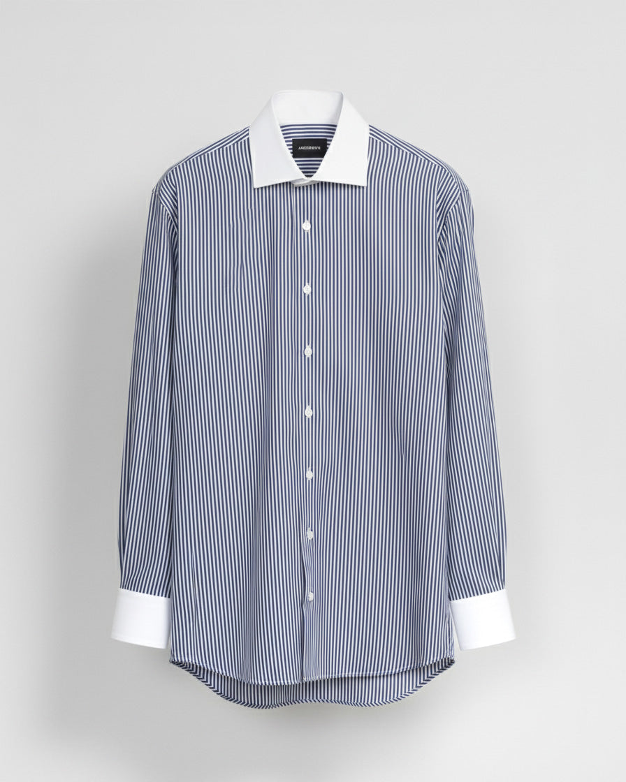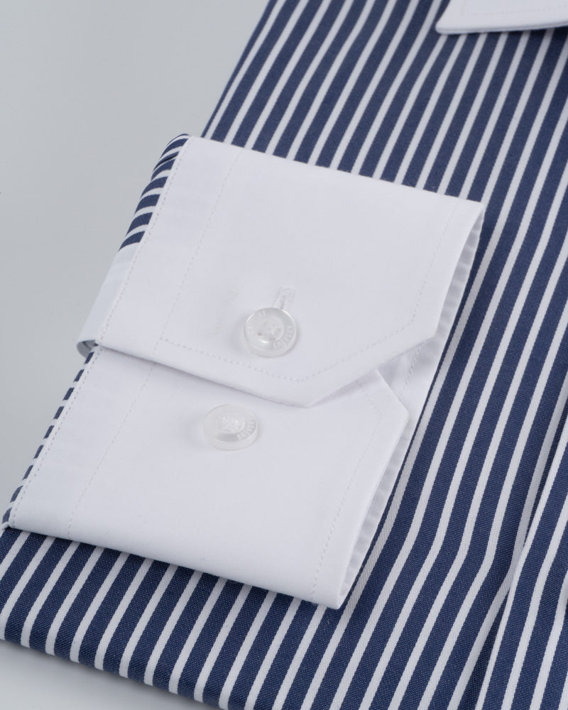 Camisa Vestir - Azul con Rayas Blancas - Cuello y puño simple Blanco