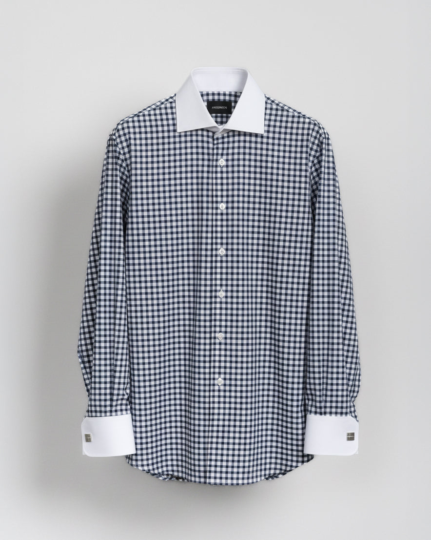 Camisa Vestir - Azul Cuadros Cuello y puño gemelo Blanco