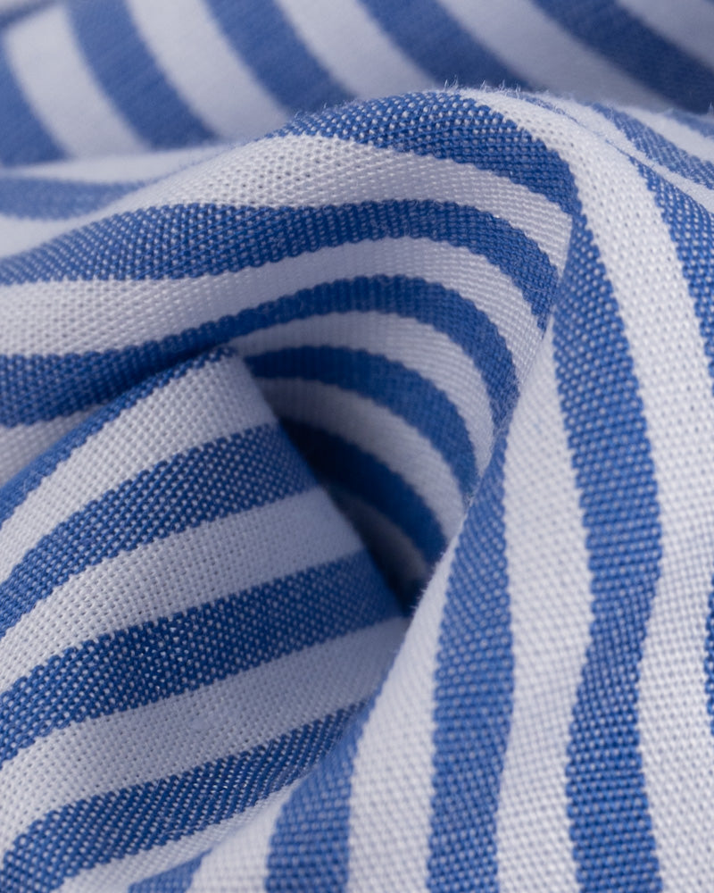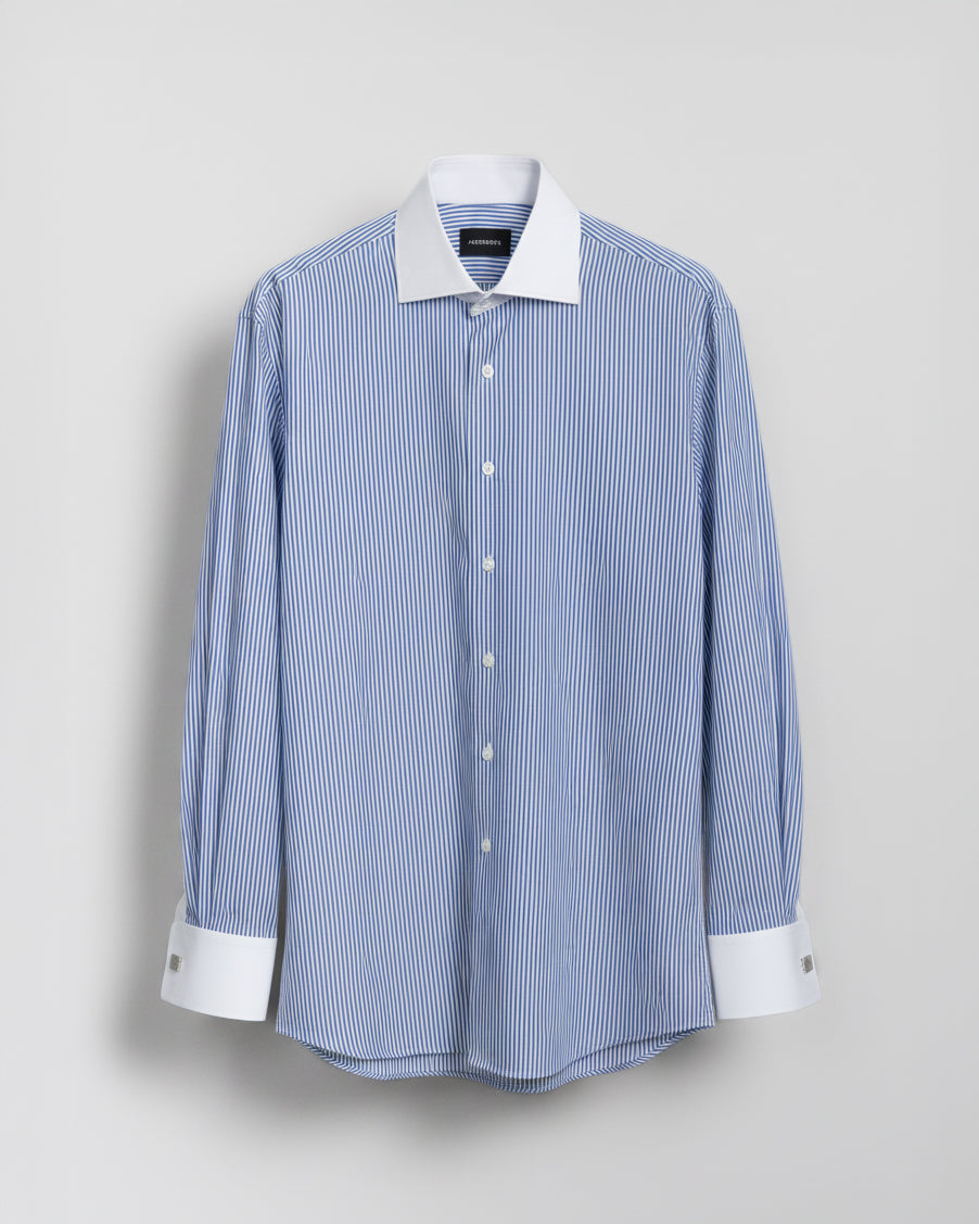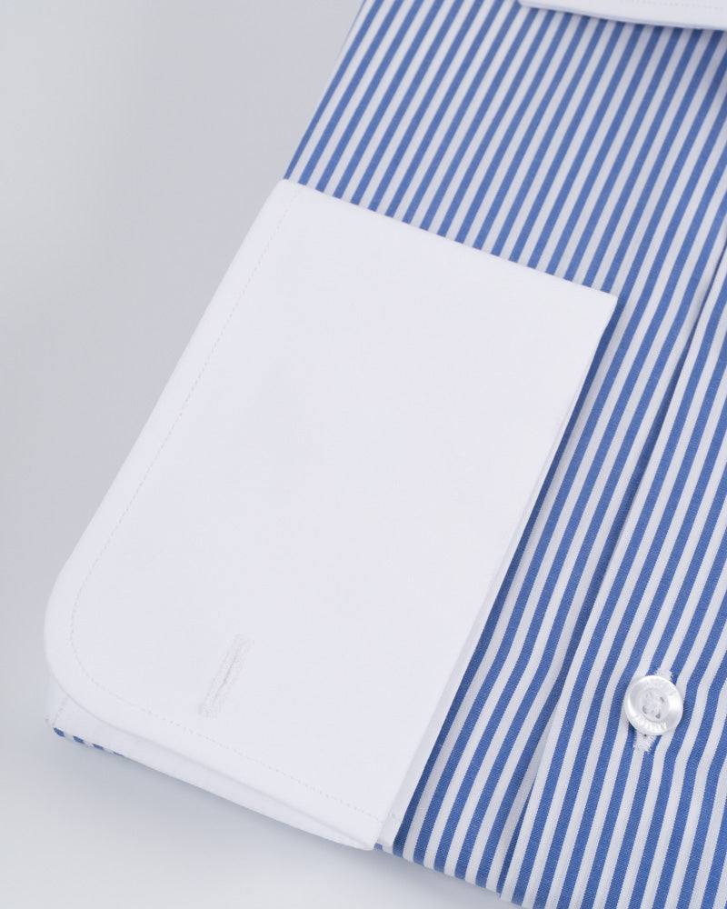 Camisa Vestir - Azulino con rayas Blancas Cuello y puño gemelo Blanco