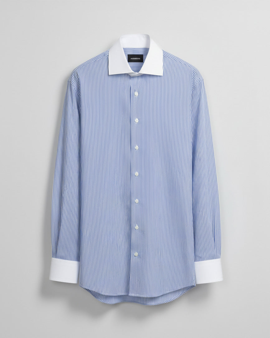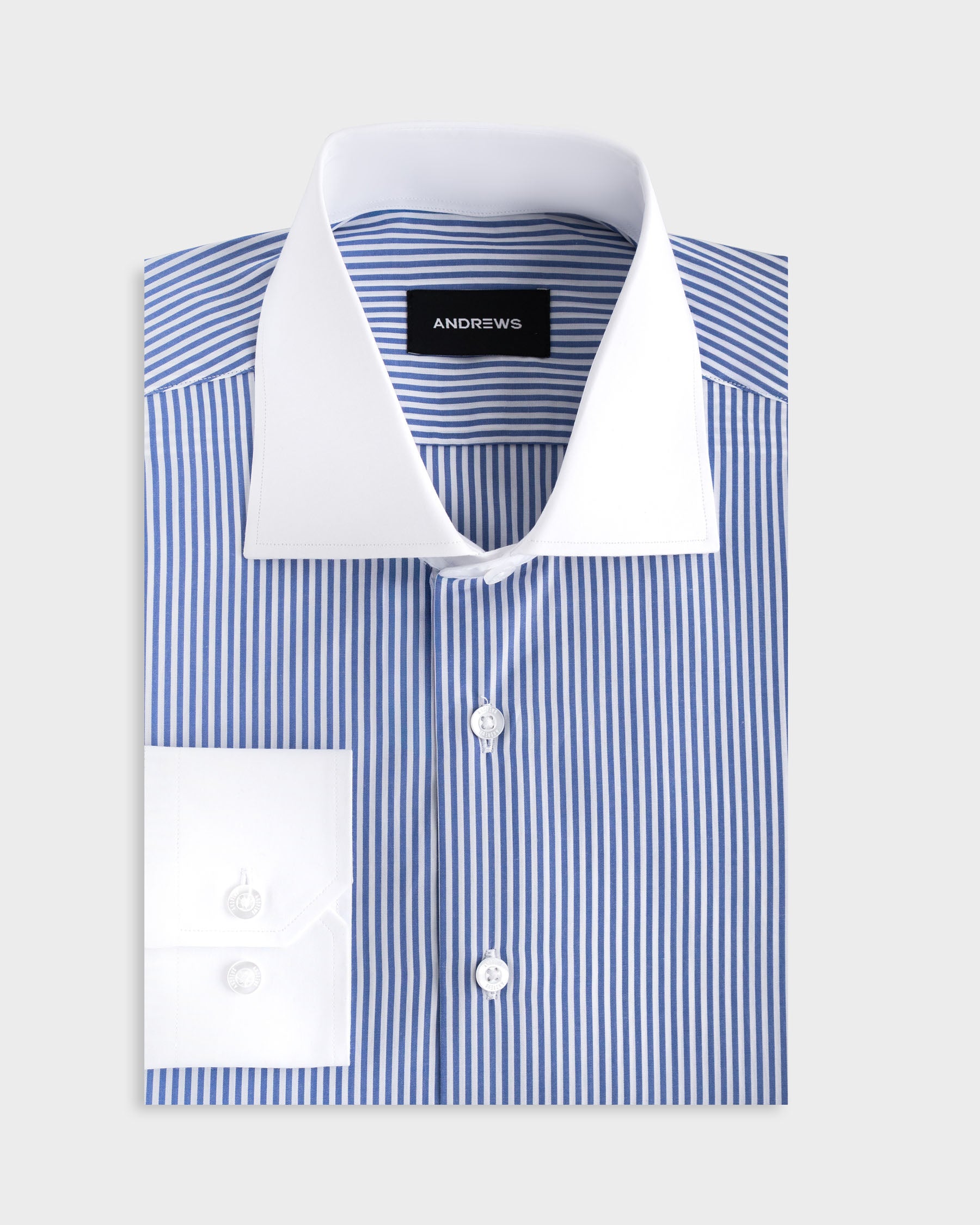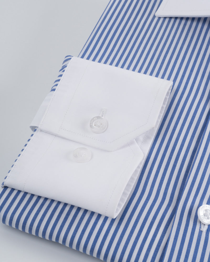 Camisa Vestir - Azulino con rayas Blancas - Cuello y puño simple Blanco