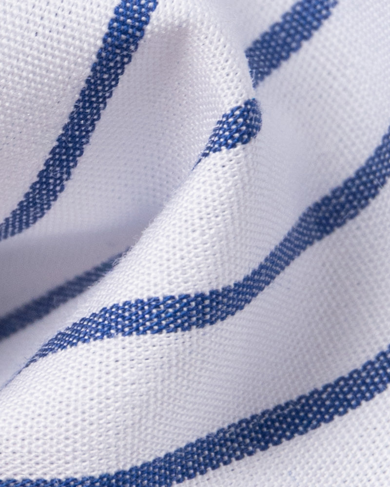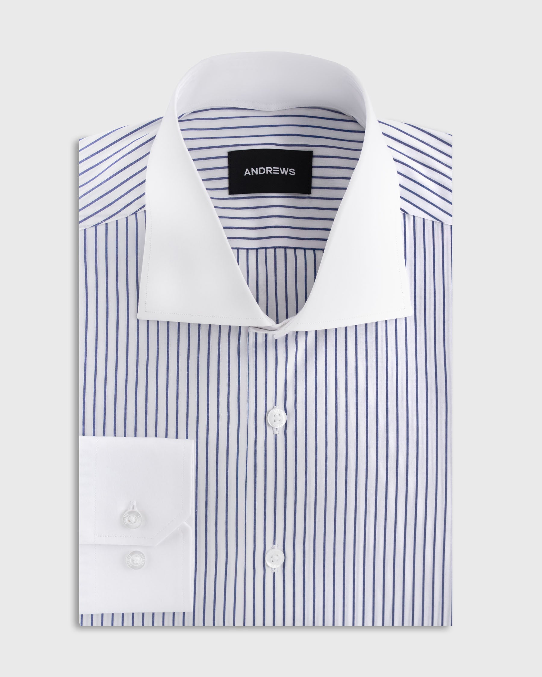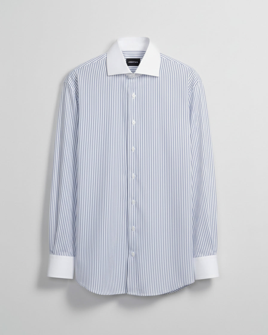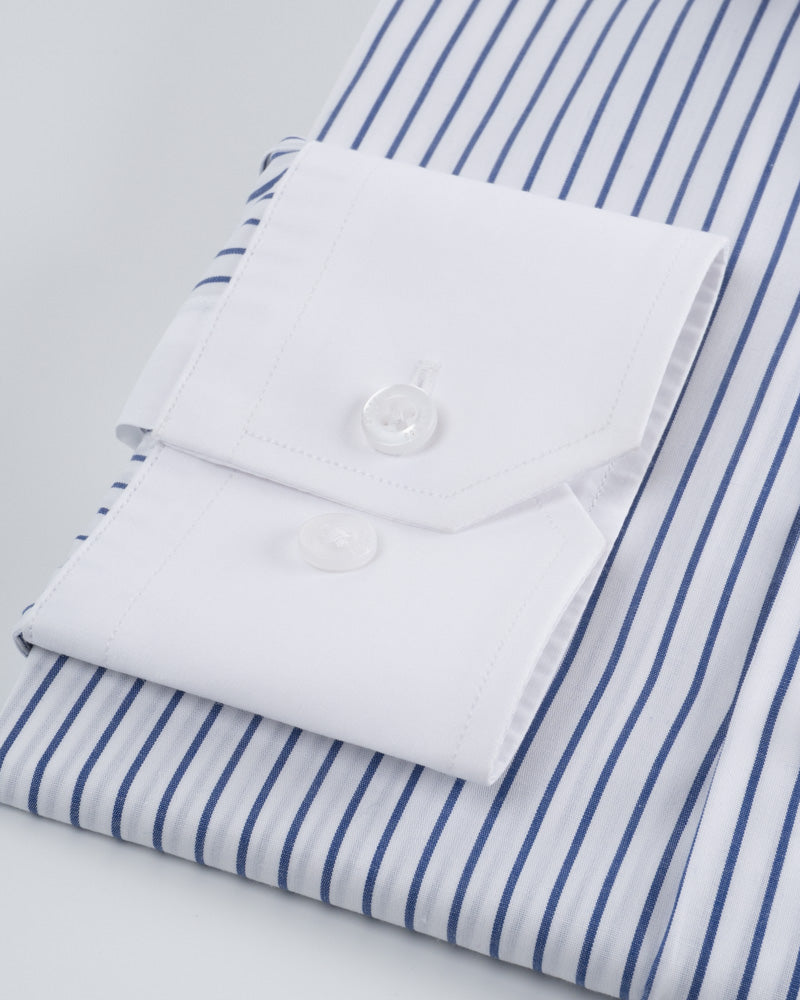 Camisa Vestir - Blanco con rayas Azules - Cuello y puño simple Blanco