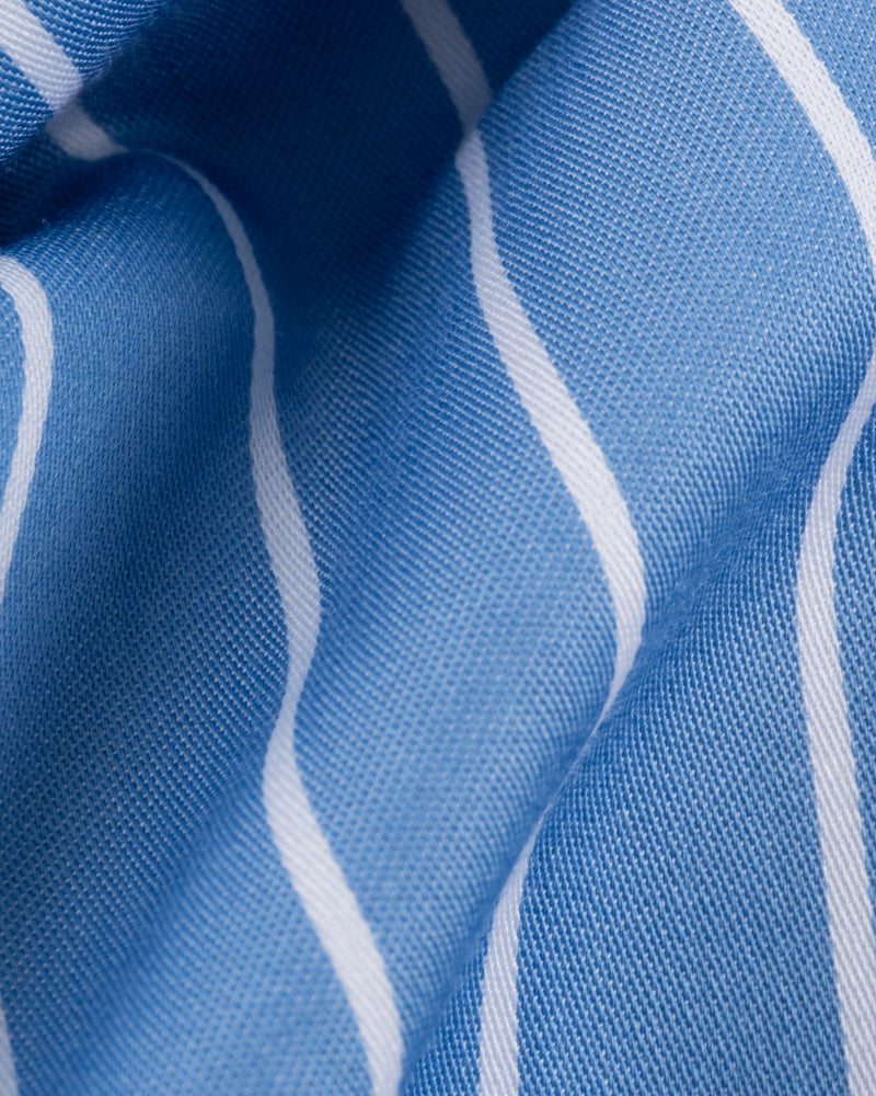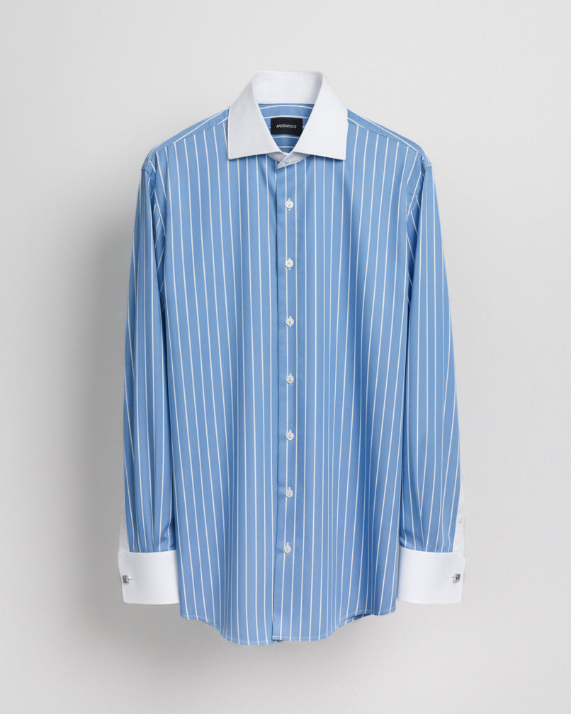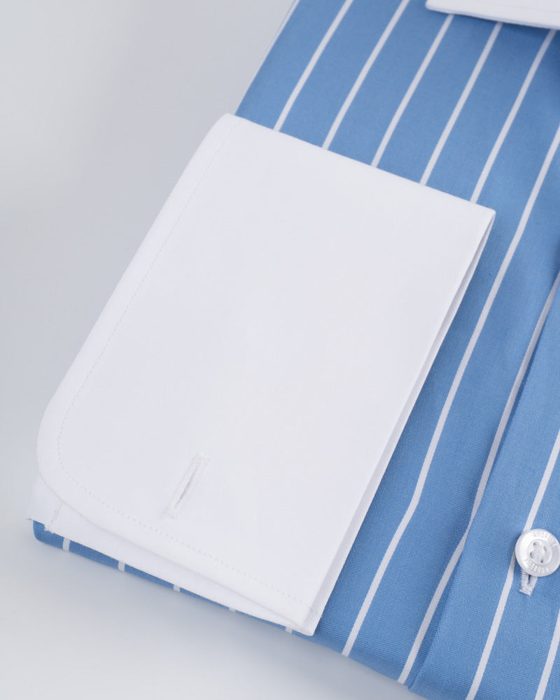 Camisa Vestir - Celeste a Rayas Cuello y puño gemelo Blanco