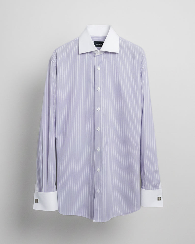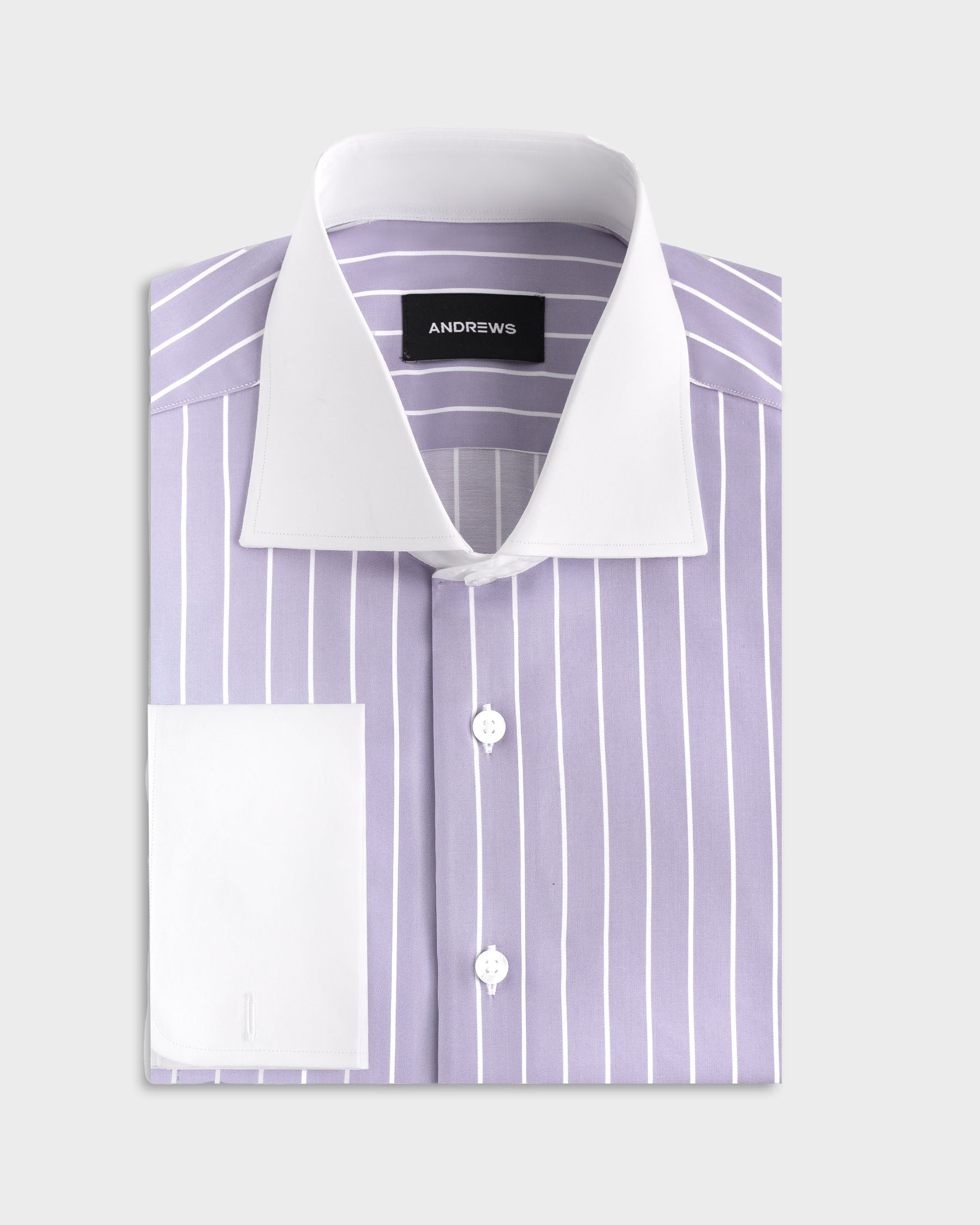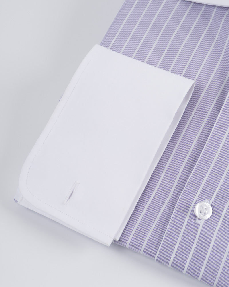 Camisa Vestir - Lila a Rayas Cuello y puño gemelo Blanco