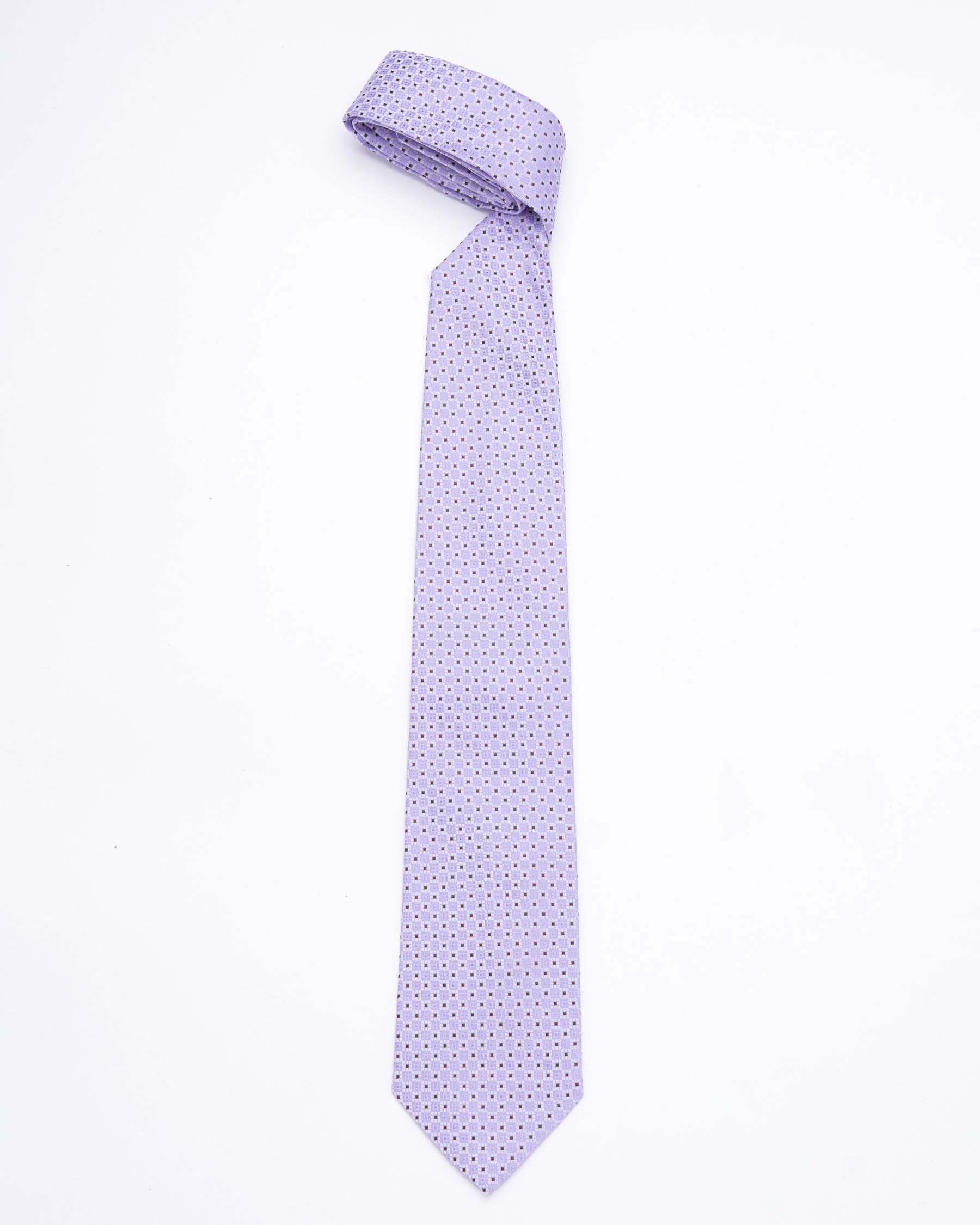 CORBATA LILA CON CUADRADOS GRISES Y MARRONES