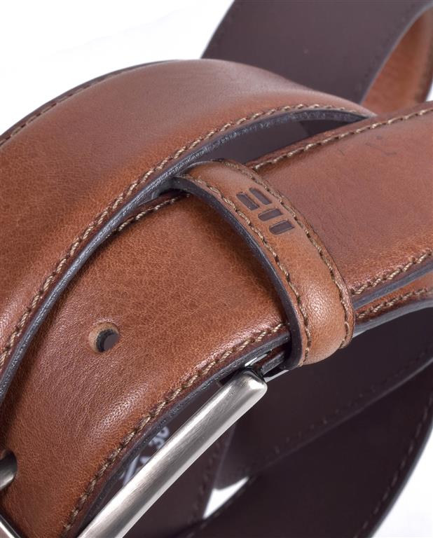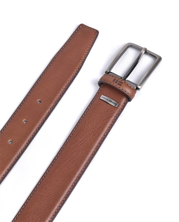 Piel de vacuno. Ajustable, acolchado y cosido. Hebilla con acabado en níquel negro satinado.