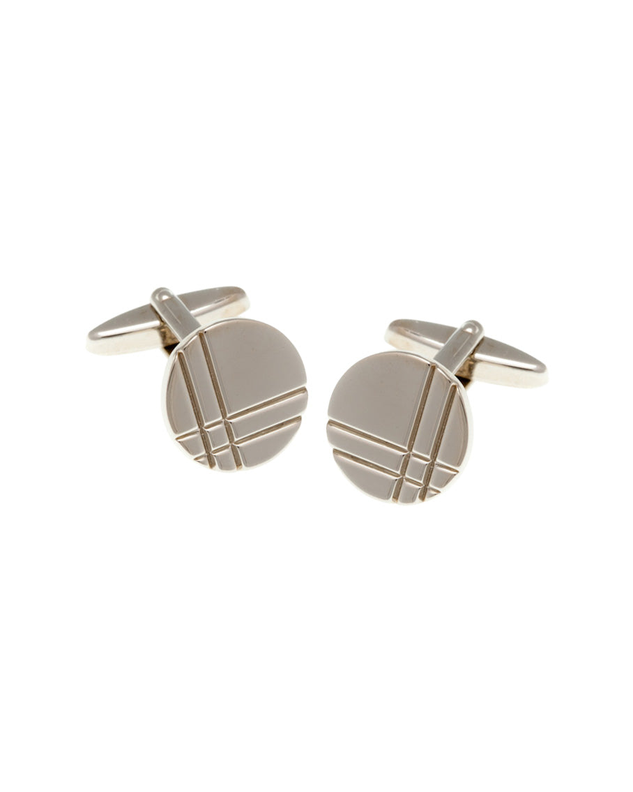 Sencillos pero diferentes, gemelos redondos pulidos con detalles de líneas cruzadas. Combínalos con un sencillo pasador de corbata metálico para completar el look.
