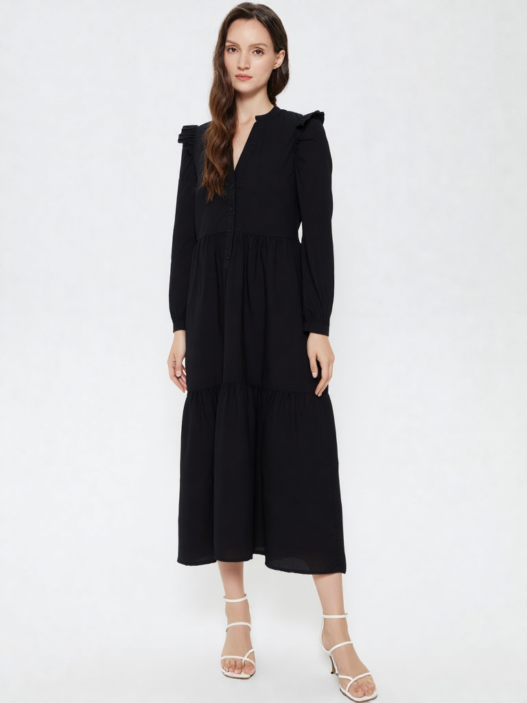 Vestido Lea Negro con Flecos en los Hombros para mujer
